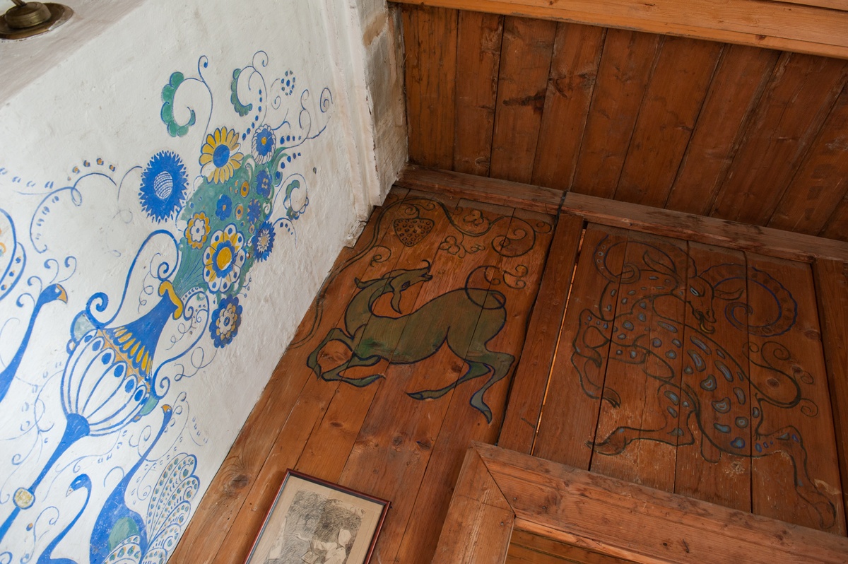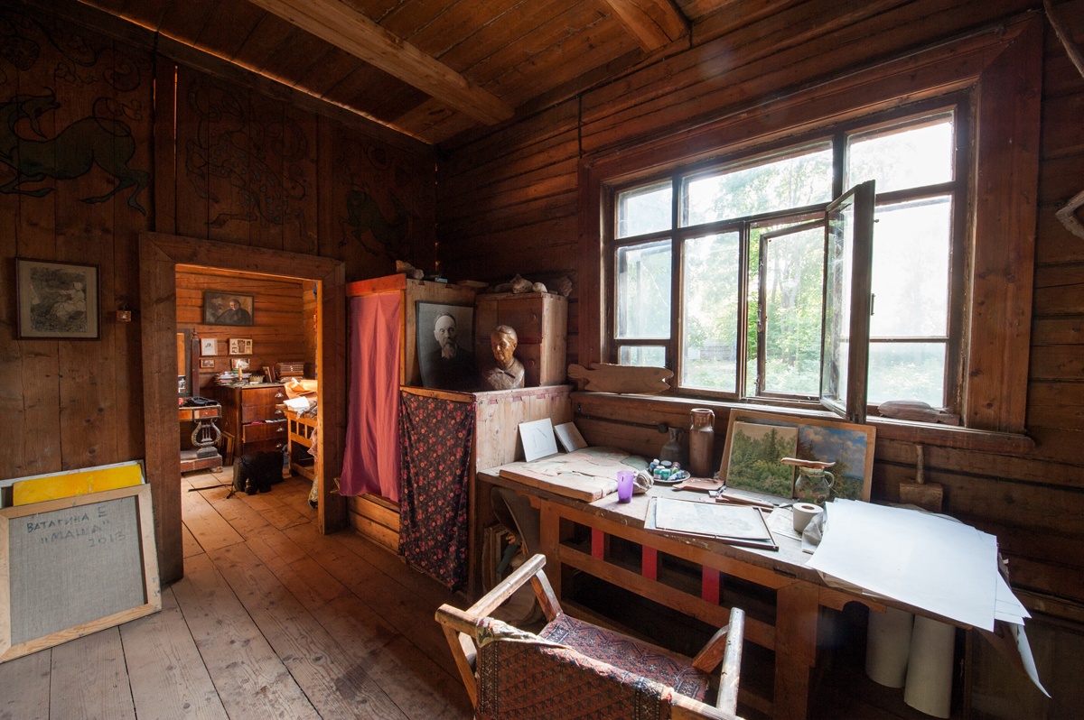 В создании интерьеров своей мастерской Ватагин принимал непосредственное участие. В оформлении внутреннего пространства мы видим роспись по дереву, изделия из глины, керамические изделия, комнаты меблированы в стиле индийского эпоса, мастерскую украшает декоративное панно на ту же тематику. Все эти детали интерьера сохранились до наших дней.