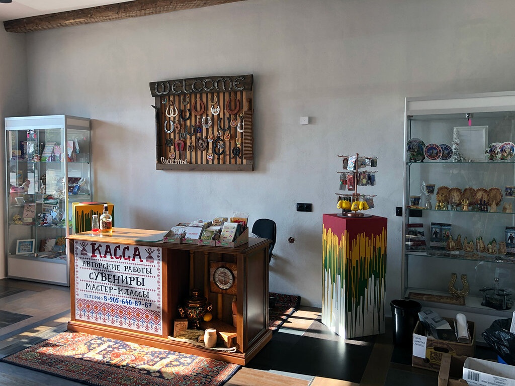 В Магазине сувениров и впечатлений можно купить смешные подарки, изделия боровских мастеров и просто вещи, которые точно сделают человека счастливее. В кафе "Чашечная" можно насладиться не только прекрасным видом на долину реки Протвы, но и вкуснейшими напитками и паровыми коктейлями. Сотрудник Домика Счастья может организовать обзорную экскурсию по Боровску. На территории всего комплекса работает сеть Wi-Fi.