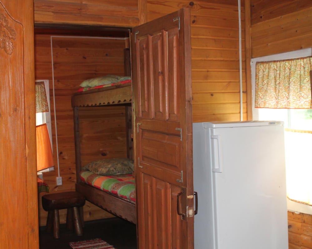 В домах: гостиная-столовая для самостоятельного приготовления пищи, душ и санузел. Имеется дровяная печь-камин, электрическая плита, холодильник, набор посуды, электрический чайник, СВЧ-печь. На улице есть терраса и место для костра. Разрешена любительская рыбалка, сбор грибов и ягод.