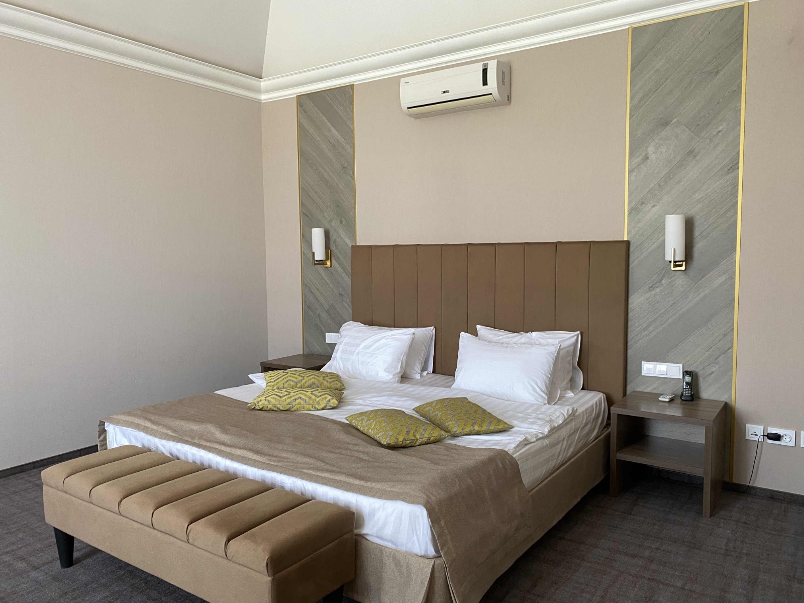 Уровень гостиницы: Современный комплекс. Вид из номеров гостиницы – панорама Оптиной Пустыни и Козельска. Все номера оформлены в эксклюзивном дизайне, отделочными материалами высокого класса и мебелью высшей комфортности. Номера также оснащены электронными замками, телевизорами, телефонами, кондиционерами, мини-барами, электронными сейфами, системой спутникового телевидения с российскими и международными каналами. Санузлы с душевой кабиной.