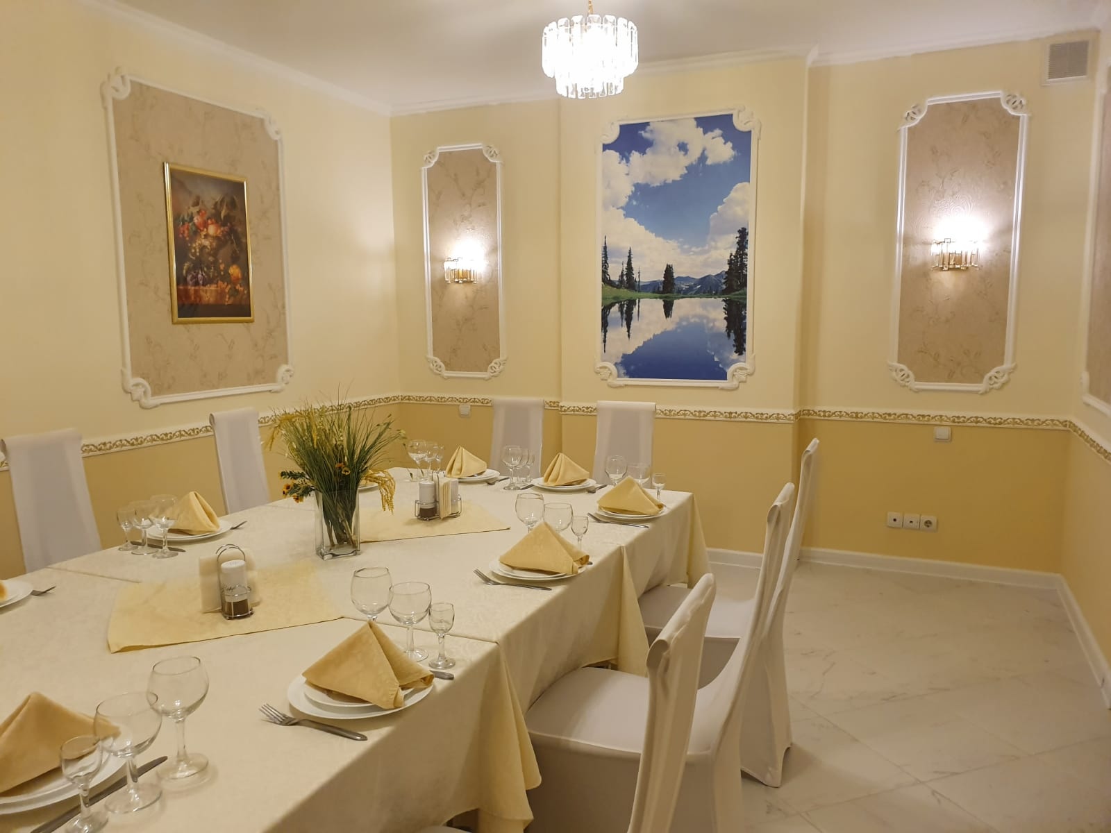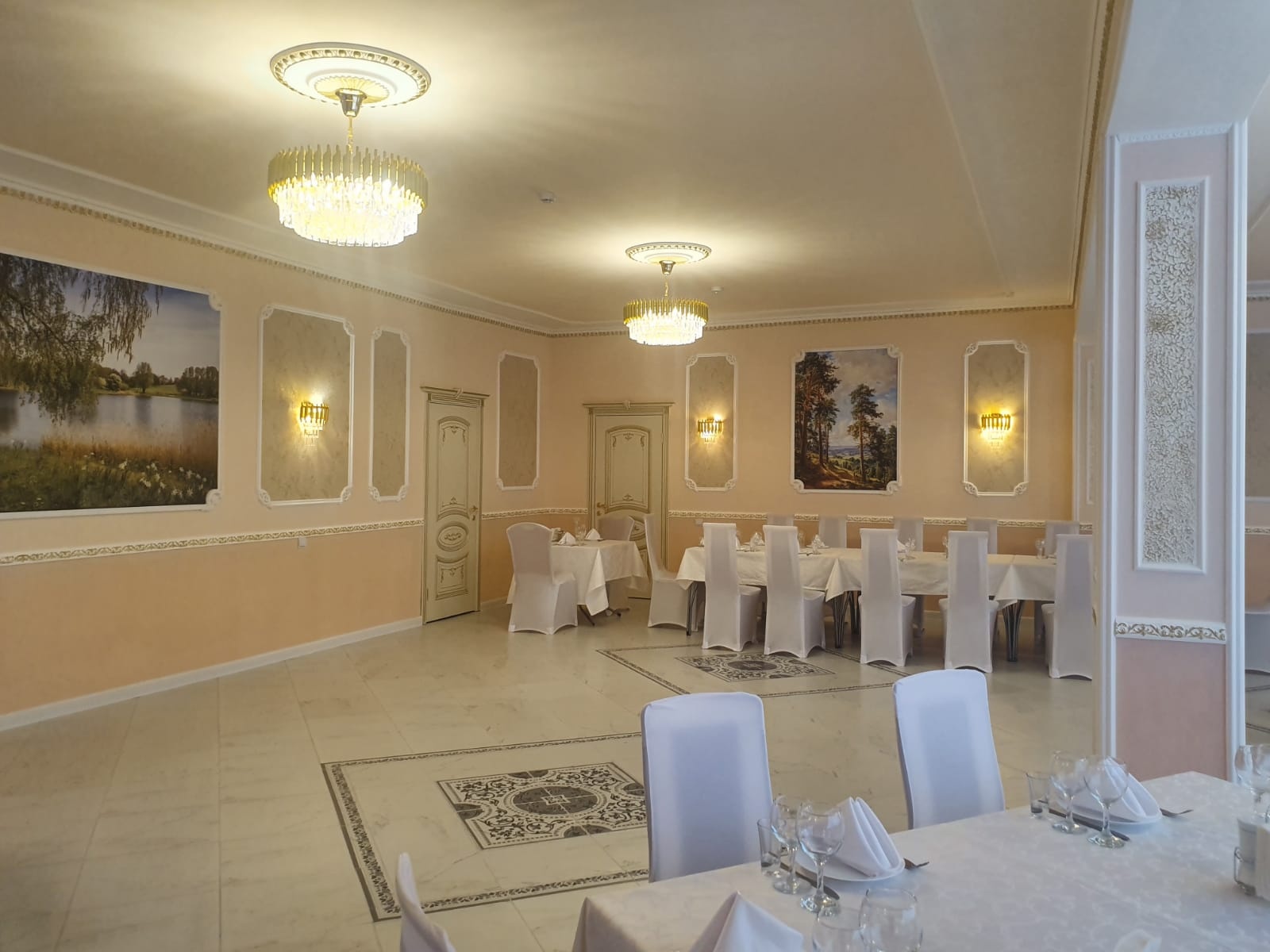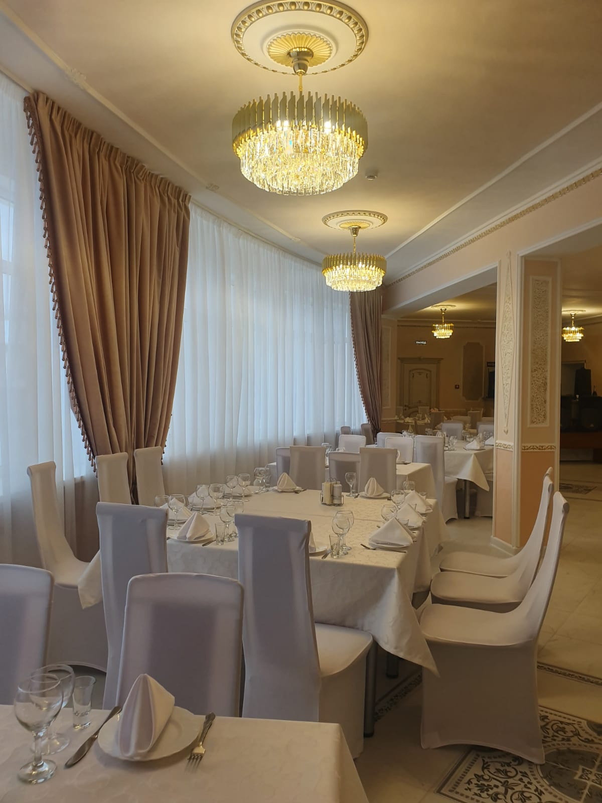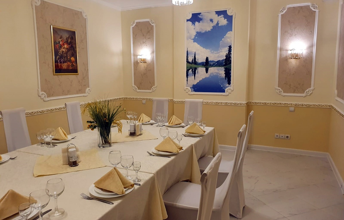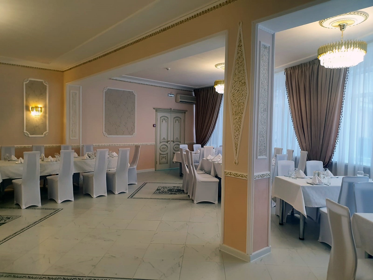 - ресторан: большой банкетный зал на 100 посадочных мест, реконструированный в современном классическом стиле, малый зал на 40 мест и VIP-зал на 20 мест;