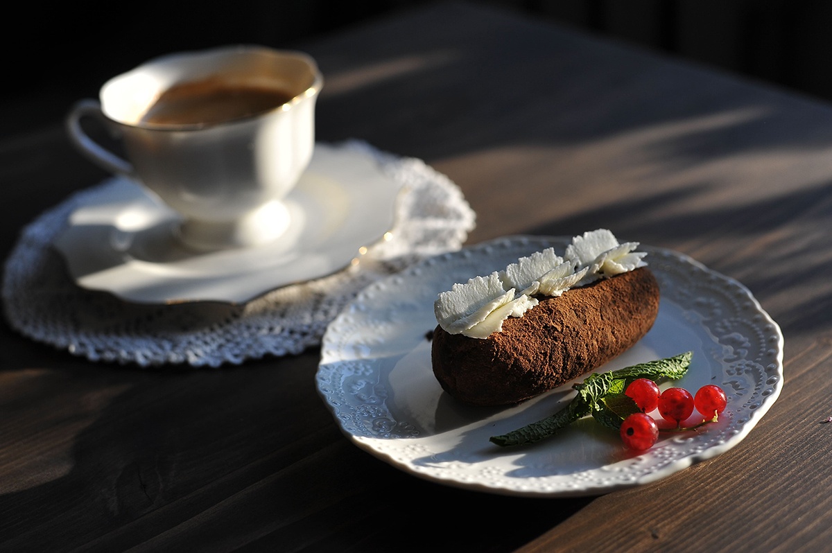 Здесь готовят и подают завтраки, а также основные блюда. Среди главных позиций в меню фирменные пышки, единственные в Козельске!, блюда на живом огне и мангале (плов, шурпа, различные виды шашлыков), фирменные закуски и десерты к разнообразным видам кофе и чая, включая фруктовые, ягодные, со специями.