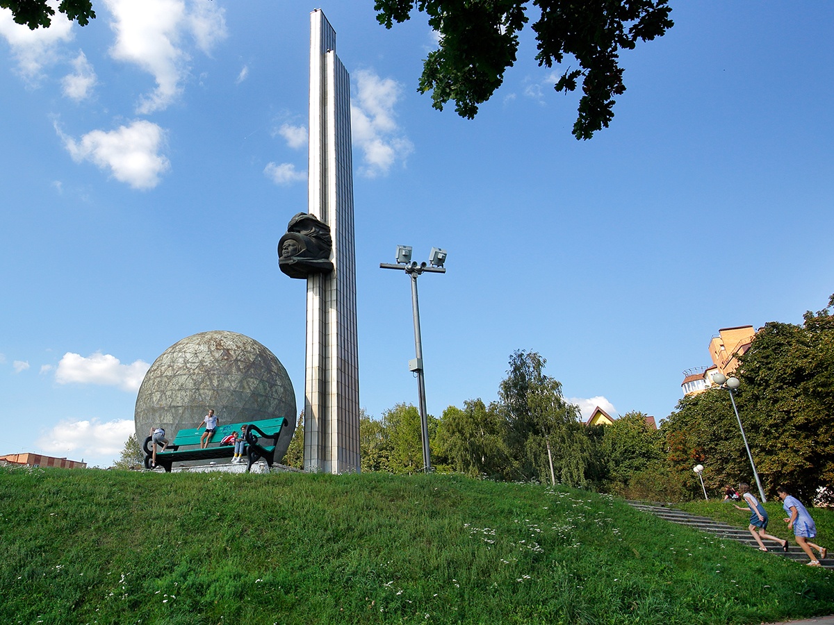 Великолепная панорама города открывается с главного въезда в Калугу. Над проектом ансамбля трудился архитектор Е.И. Киреев. Здесь установлен монумент 600-летию города – пилон из титана со скульптурным портретом космонавта (в чертах лица которого калужане угадывают первого космонавта Земли Юрия Гагарина). У подножия пилона – сфера, за что в народе монумент приобрел лаконичное название "шарик". На шести стелах, установленных вдоль улицы Гагарина, запечатлены самые важные страницы из шестивековой истории Калуги.