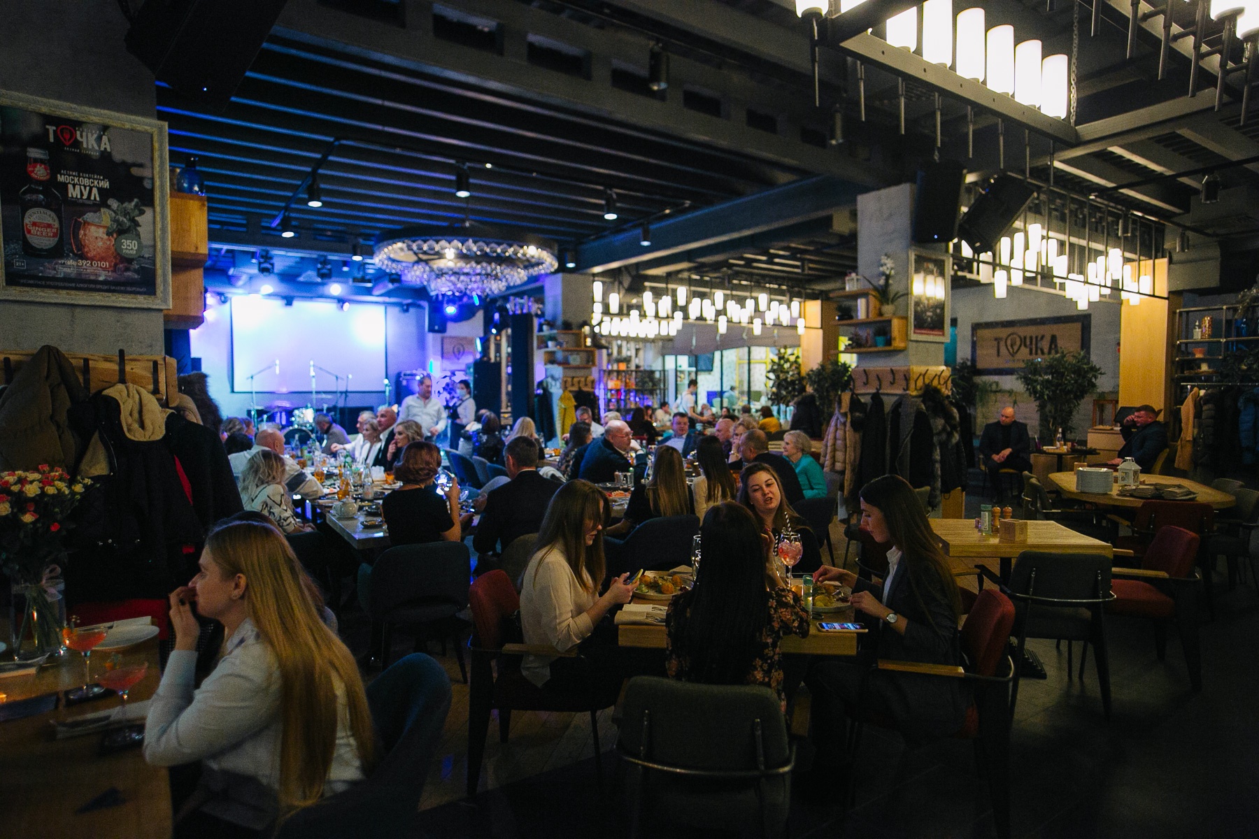 Здесь пицца - из дровяной печи, а морепродукты - из собственного аквариума. Ресторан "Точка" находится на 2-м этаже развлекательного комплекса "Резиденция", где первый этаж занимает баня, а на третьем этаже ночной клуб.