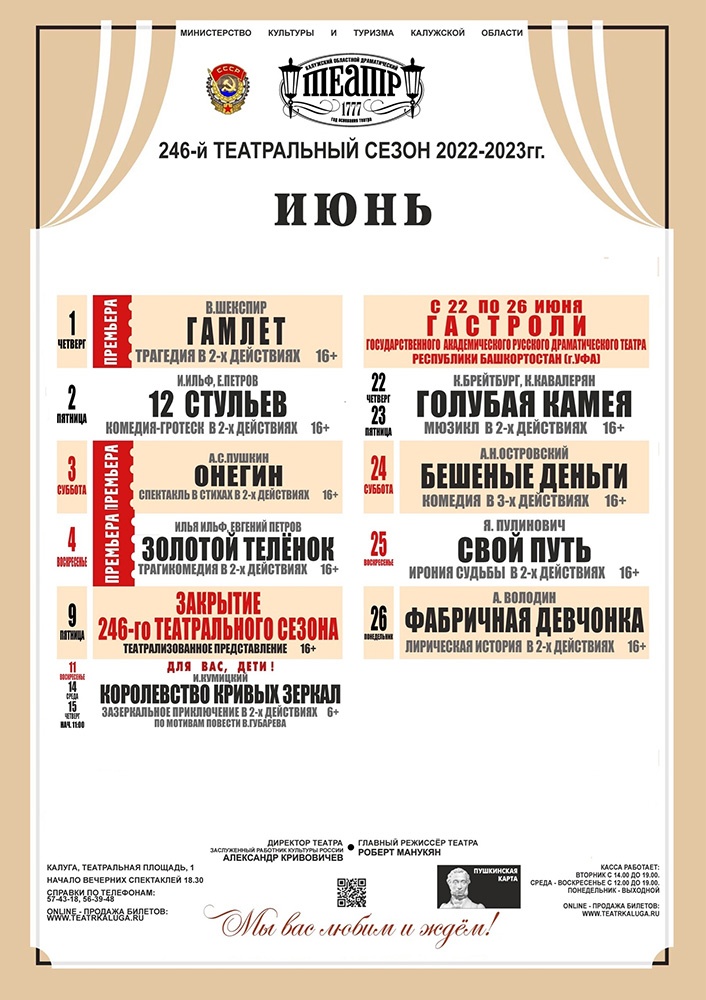 !!! Представление покажут по завершении 246-го театрального сезона: 11, 14 и 15 июня.