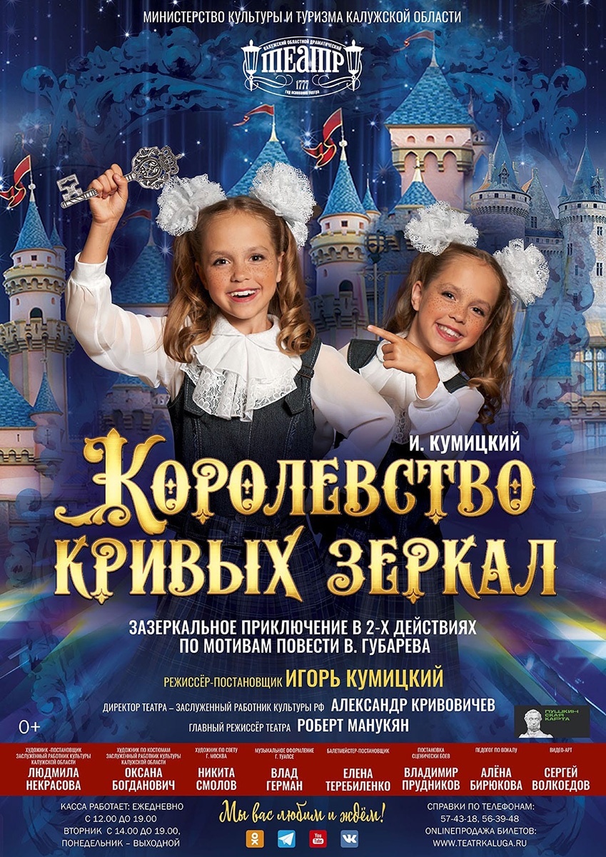 - Новогоднее представление, которое впервые показано 23 декабря, — это сказка по повести В. Губарева «Королевство кривых зеркал». Постановка Игоря Кумицкого. Сеансы назначены во все последующие дни до Нового года и в первых числах января до конца новогодних каникул.