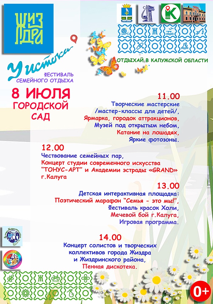 Жиздра присоединяется к региональному проекту «Сельское лето. Отдыхай в Калужской области». 8 июля в городском саду Первым Фестивалем семейного отдыха «У истока» отметят День семьи, любви и верности. Гостей ожидает насыщенная программа: концерты, творческие мастер-классы, чествование семейных пар, ярмарка, фотозоны, городок аттракционов, фестиваль красок Холи, пенная дискотека, спортивные соревнования и не только. Вход свободный.