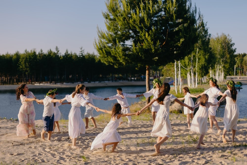 20:00 - 22:00 развлекательная программа для всех (хороводы с песнями, прыжки через костер, запуск венков на воду)