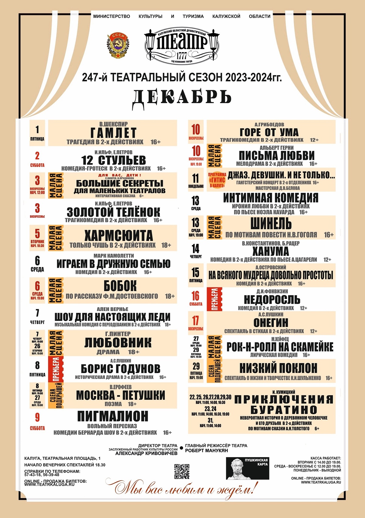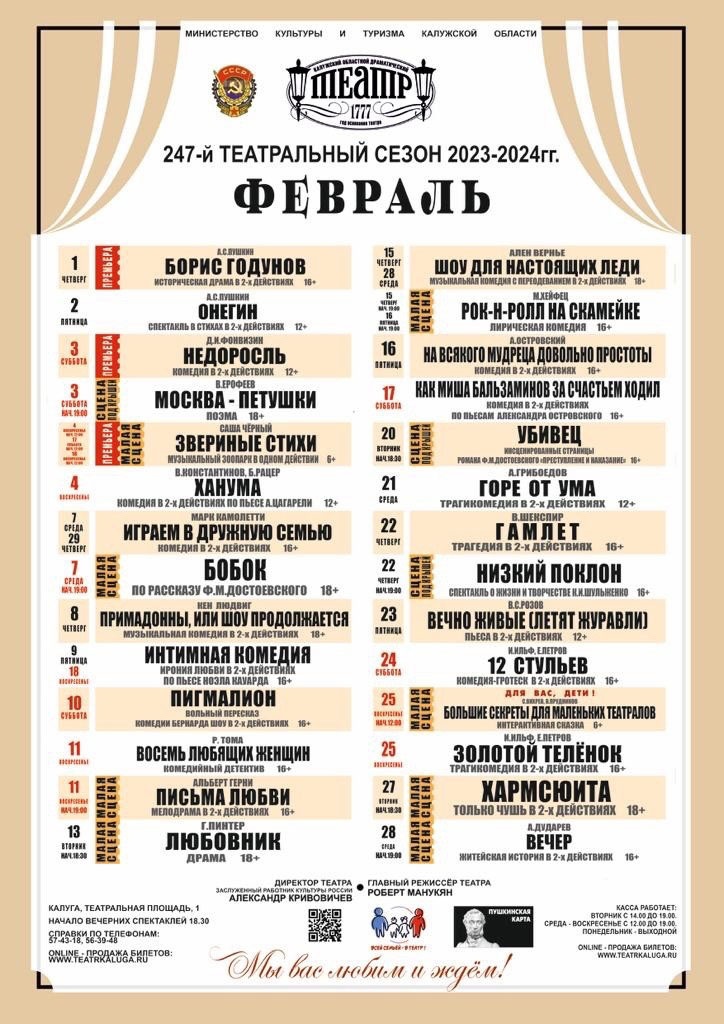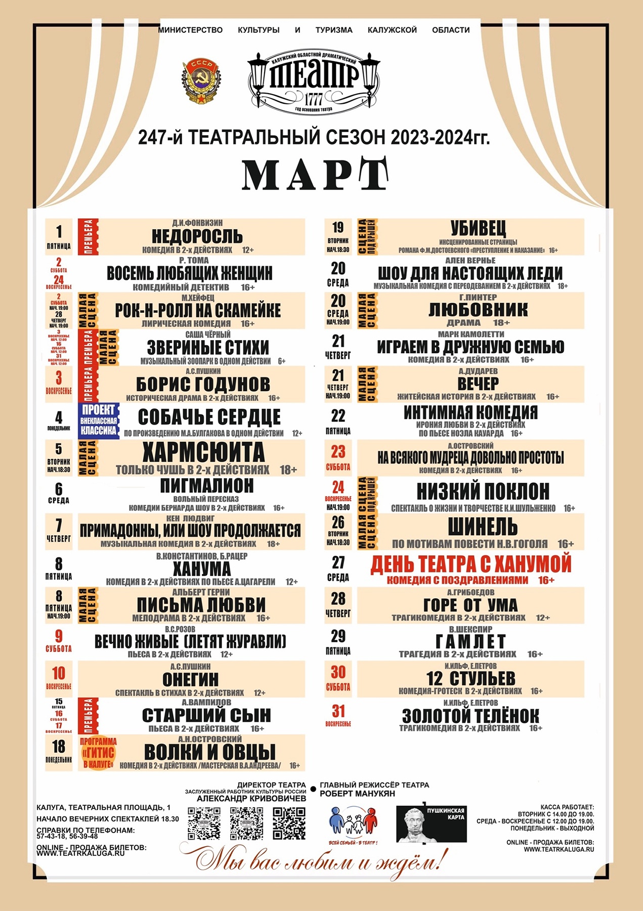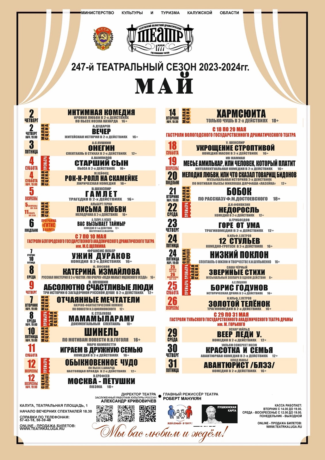 247-й сезон Калужского драматического театра откроется 6 октября премьерой исторической драмы «Борис Годунов» А.С. Пушкина.