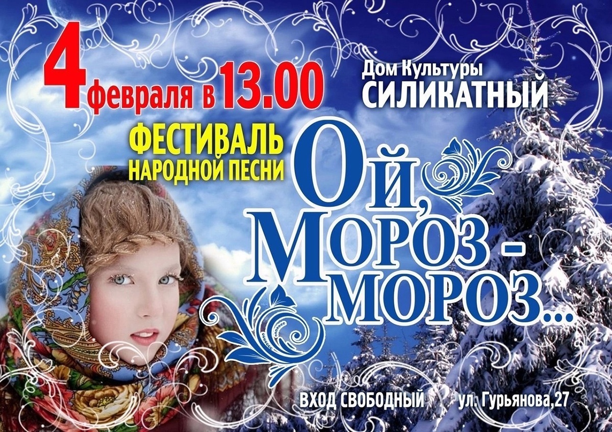 На Руси силу издавна черпали в песне. Всё содержательное и музыкальное богатство русского песенного искусства почувствуют гости 7-го открытого фестиваля народной песни «Ой, мороз, мороз...», который состоится 4 февраля в Доме культуры «Силикатный».