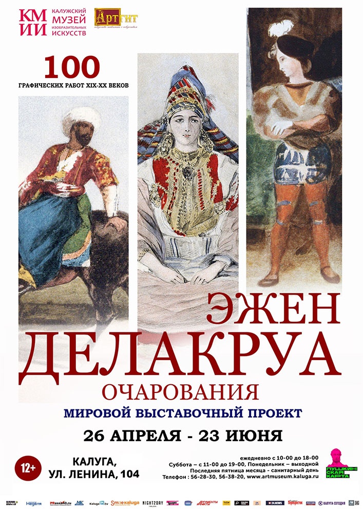 26 апреля в 12.00 часов в выставочном зале Калужского музея изобразительных искусств откроется выставка «Очарования Делакруа», которая представляет собой масштабную ретроспективу работ величайшего французского художника XIX века Фернана Виктора Эжена Делакруа – 100 литографий и гравюр, выполненных в Париже и Лейпциге в 1864, 1913 и 1928 годах с его зарисовок, эскизов, рисунков и картин, охватывающих самый плодотворный период творчества с 1823 по 1857 годы.