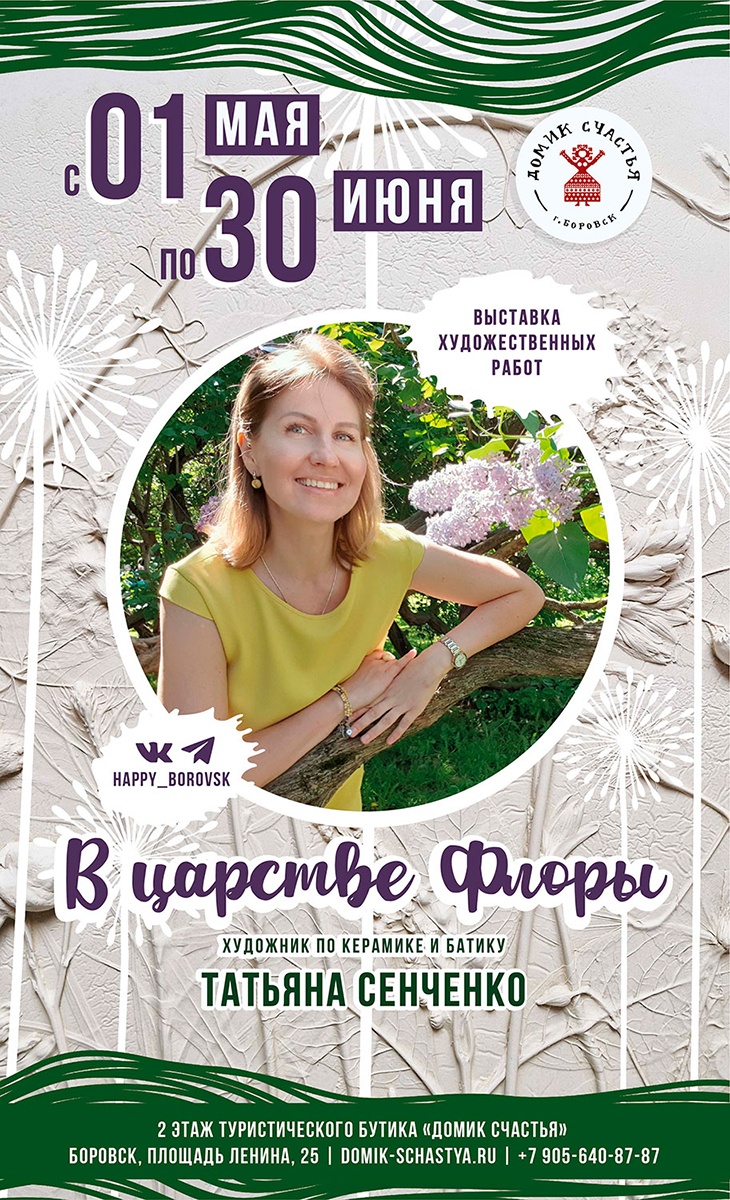 Татьяна Сенченко — художник по керамике и батику. Родилась и выросла в Москве, а творческий путь начала в возрасте 4-х лет. Член Ассоциации художников ботанического искусства (SABA), выпускница арт-резиденции «Искусство ботанического барельефа». Выбор ботанической направленности в творчестве не случаен. Многообразие форм и оттенков флоры и фауны — то, что всегда вдохновляло и наполняло художницу. Татьяна создаёт шедевры в дачной мастерской под Боровском, черпая вдохновение из красоты, самобытности и гармонии калужского края.