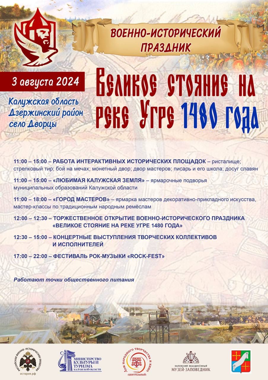 12:00-12:30 - Торжественное открытие военно-исторического праздника "ВЕЛИКОЕ СТОЯНИЕ НА РЕКЕ УГРЕ 1480 ГОДА"