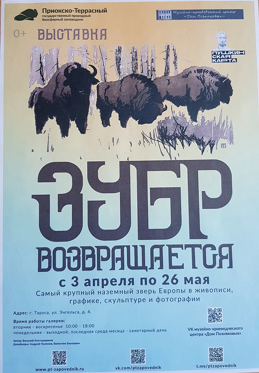 Историю чудесного возвращения лесных исполинов можно узнать на выставке «Зубр возвращается», которая откроется 3 апреля в тарусском музейно-краеведческом центре «Дом Позняковых». Выставка, которую представляет Приокско-Террасный природный биосферный заповедник, приурочена к 75-летию создания Центрального зубрового питомника — первого в России по разведению зубра.