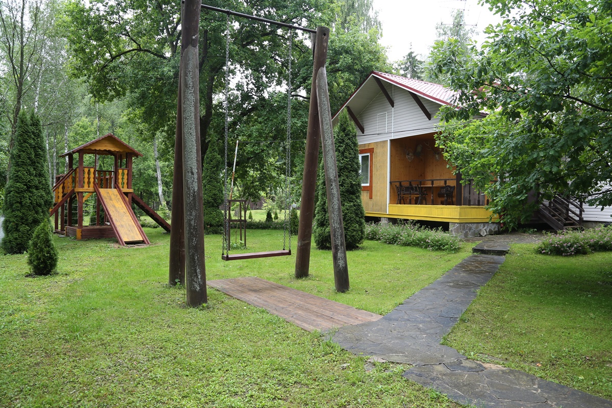 В пределах огороженной территории находятся три большие гостиницы, три рубленных дома, два гостиничных коттеджа, три рыбацких домика, две столовые, конноспортивный комплекс, несколько крытых террас и беседок с мангалами уличными каминами, мини-зоопарк и служебные сооружения. Для любителей рыбалки на берегу искусственного озера построена «Рыбацкая деревня», включающая несколько гостевых домов, паркинг, площадки для спортивного отдыха, террасы с мангалами и лодочный причал.