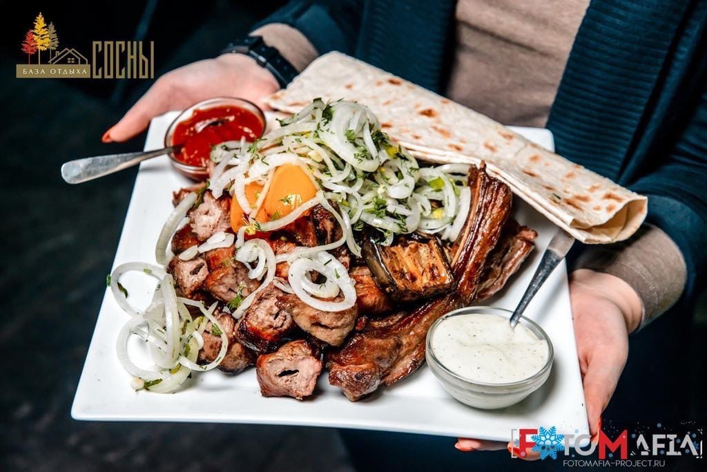 - 4 банкетных площадки: зал на 130 человек, кафе на 30 человек, шатёр на 150, коттедж на 45 человек