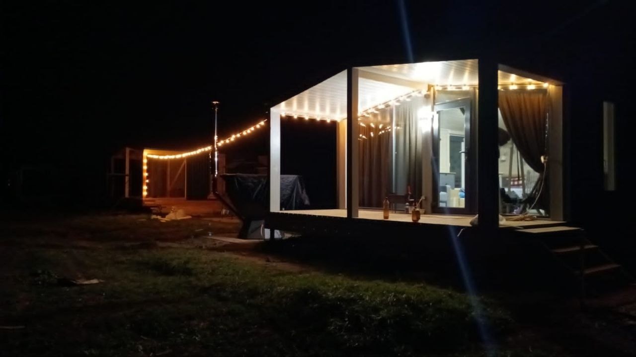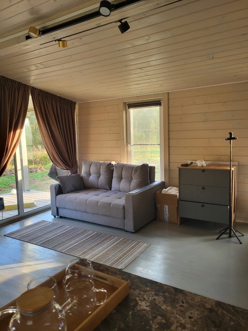 Дома оснащены всем необходимым: большая кровать с анатомическим матрасом 160*200 см и раскладной диван, горячий душ, туалет, оборудованная кухня, посуда, столовые приборы, холодильник, кондиционер, проектор, настольные игры, книги, персональная горячая купель (оплачивается отдельно), терраса с деревянными креслами и кофейным столиком, персональная мангальная зона.