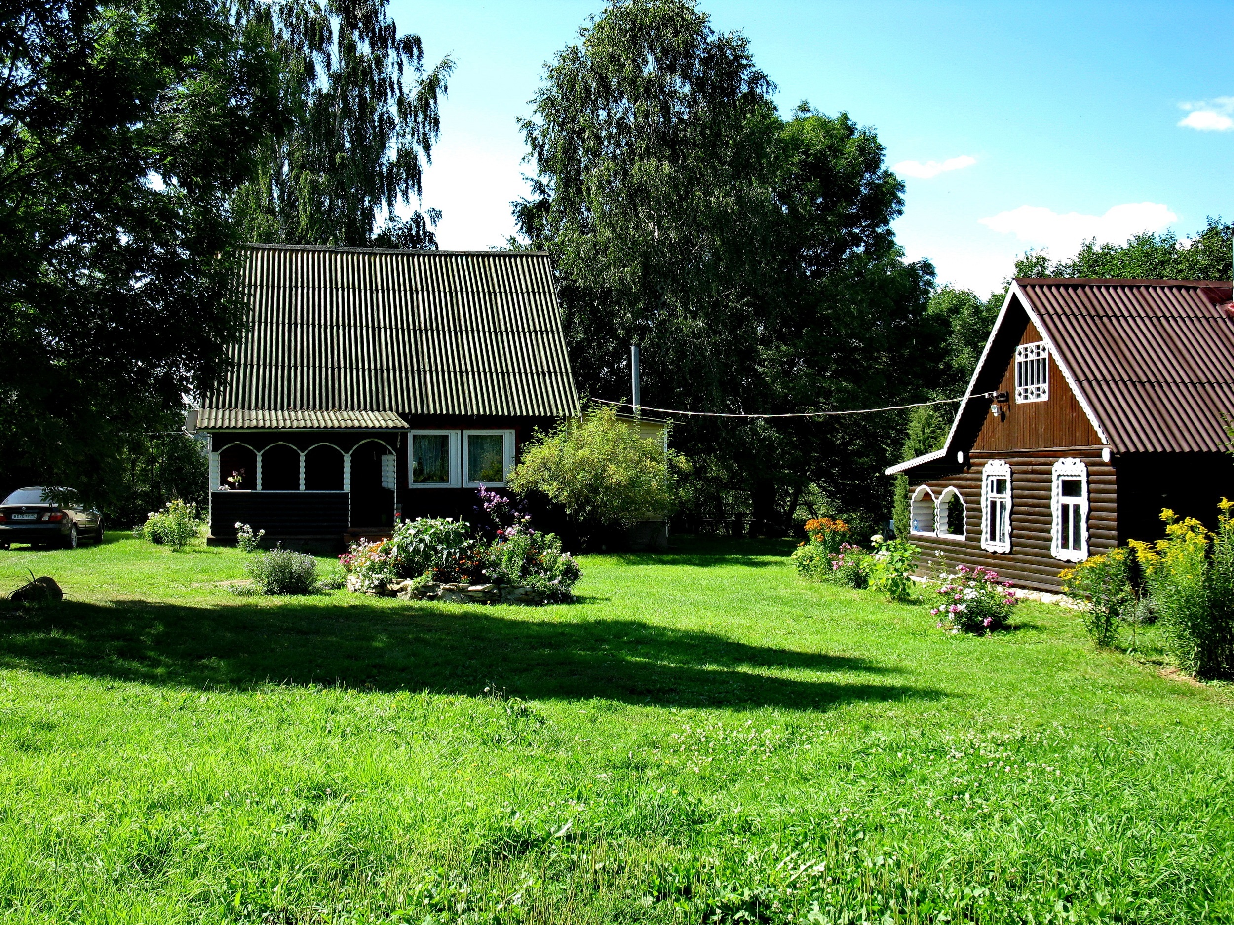 На частной закрытой территории рядом с домами расположены русская баня, зона барбекю с решетками и шампурами, летняя беседка. Имеется парковка на несколько автомобилей. Водоснабжение осуществляется из собственного чистейшего источника воды.