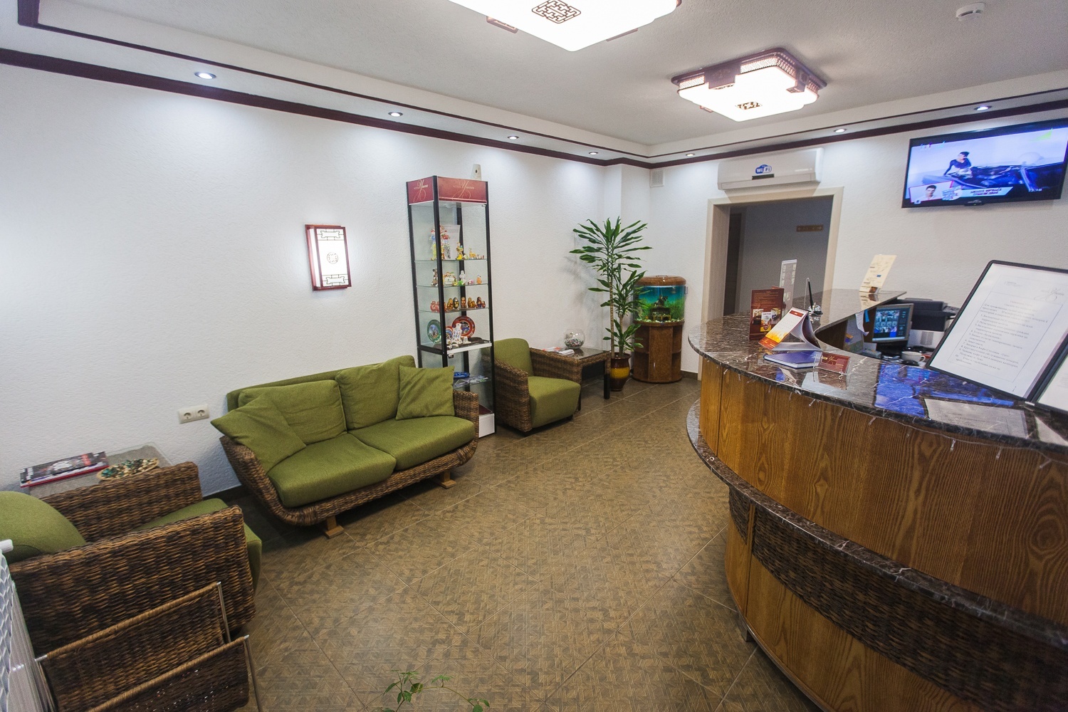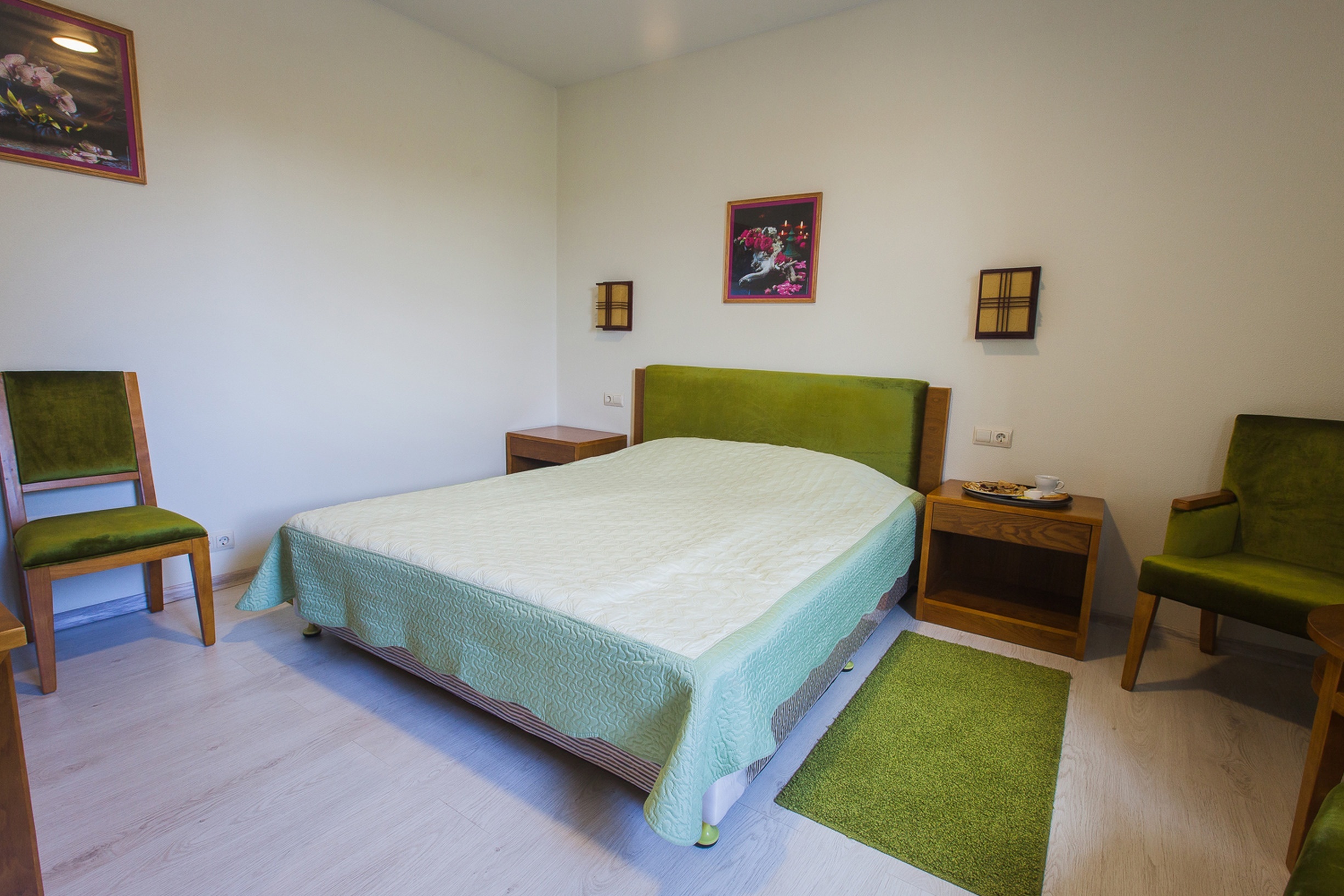 Проживание: Все номера гостиницы оформлены вклассическом стиле и оборудованы кондиционером, телевизором, холодильником ителефоном. В ванной комнате душевая кабина, косметические принадлежности, фен и комплект полотенец.