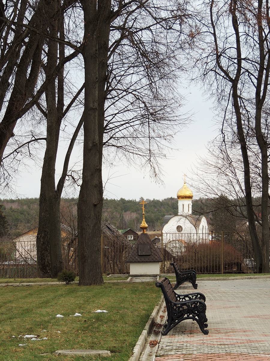 заросший парк рубежа XVIII - XIX вв., спускающийся к р. Тарусе