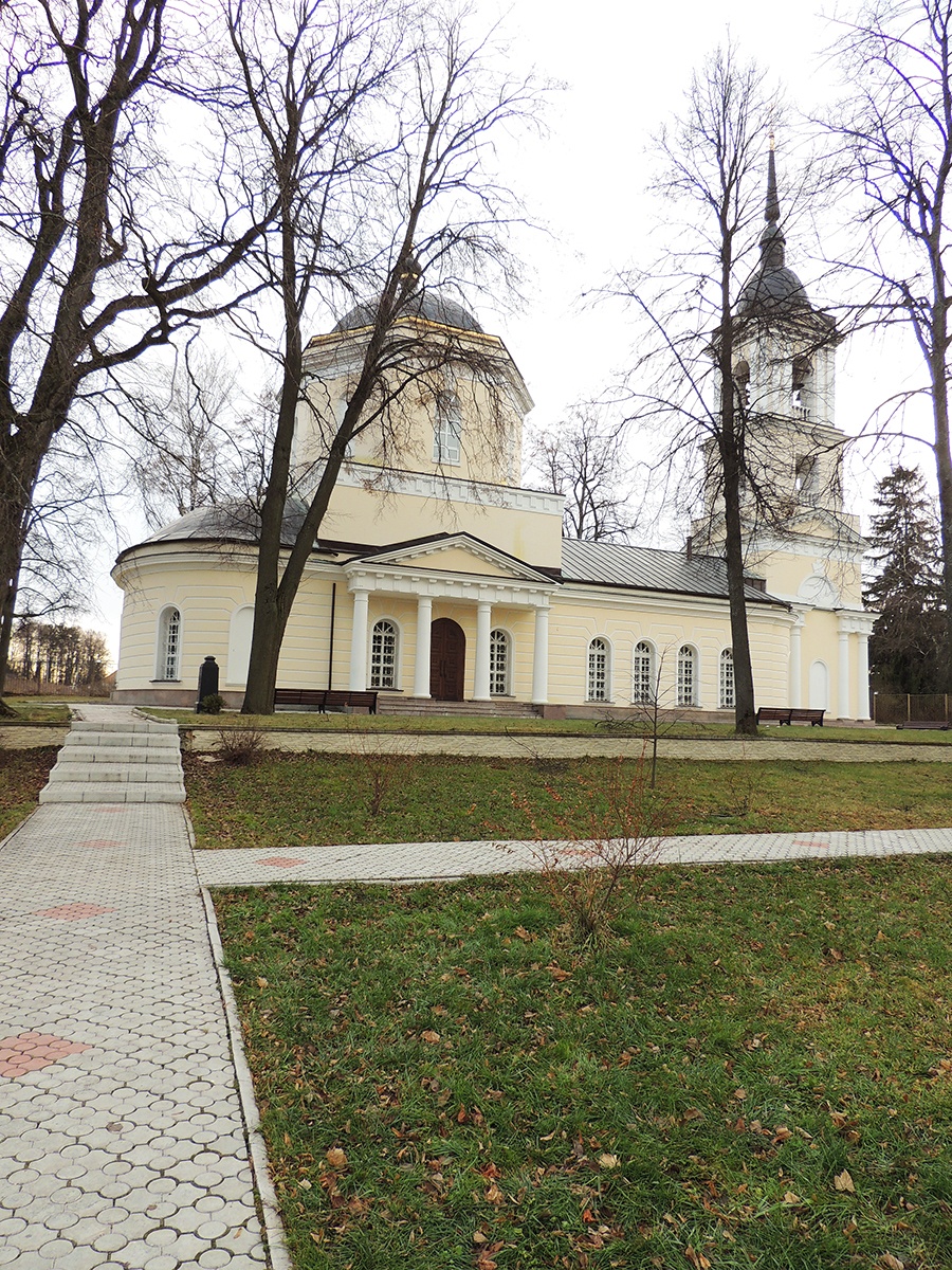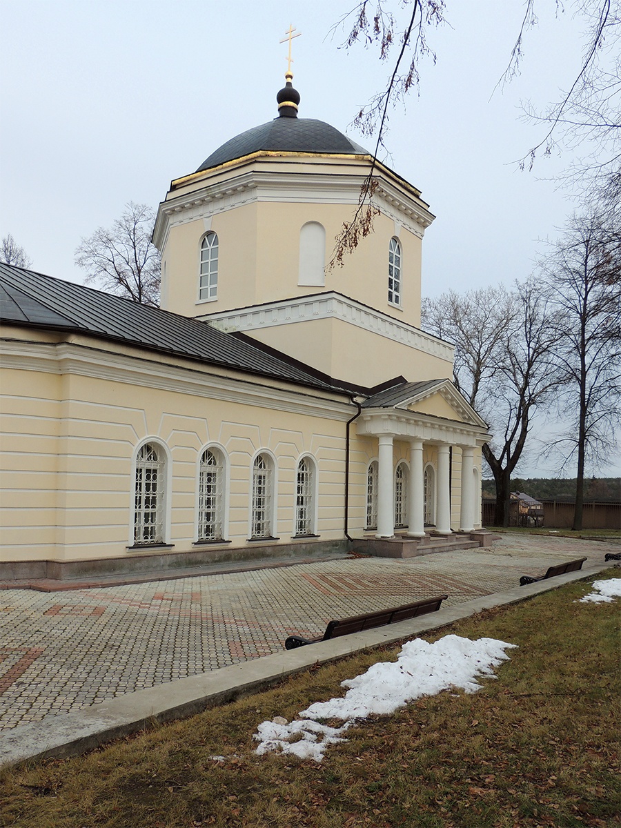 Успенская церковь 1725 г., перестроенная в начале XIX в. с возведенными тогда же колокольней и трапезной
