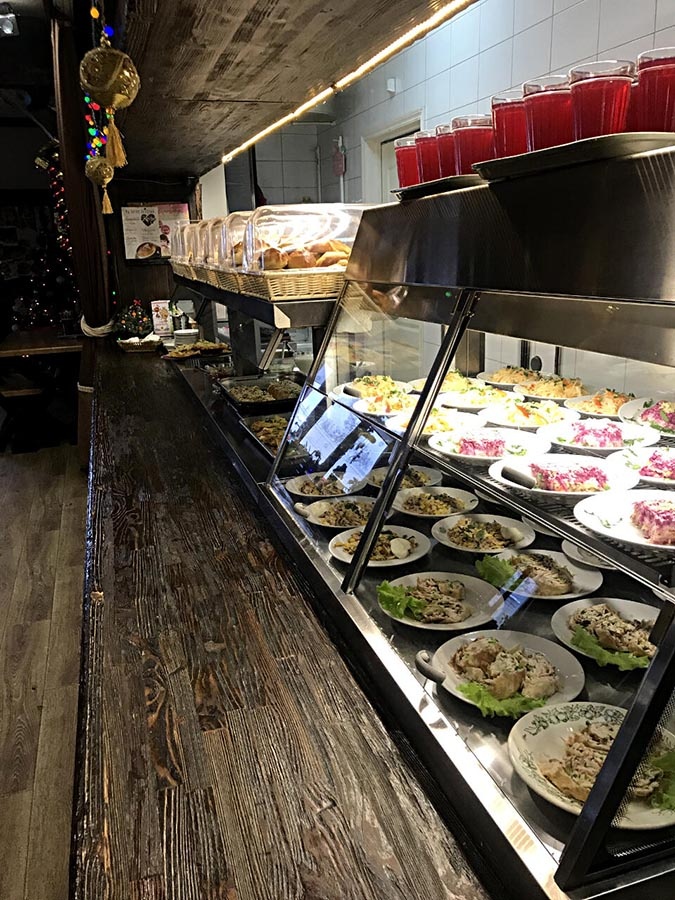 Обеденное меню каждый день новое, состоящее из постоянных позиций и новых. Обеды на заказ для туристов могут быть традиционные, постные, рыбные, в русском стиле, фуршетные или банкетные. Возможна организация детского стола.