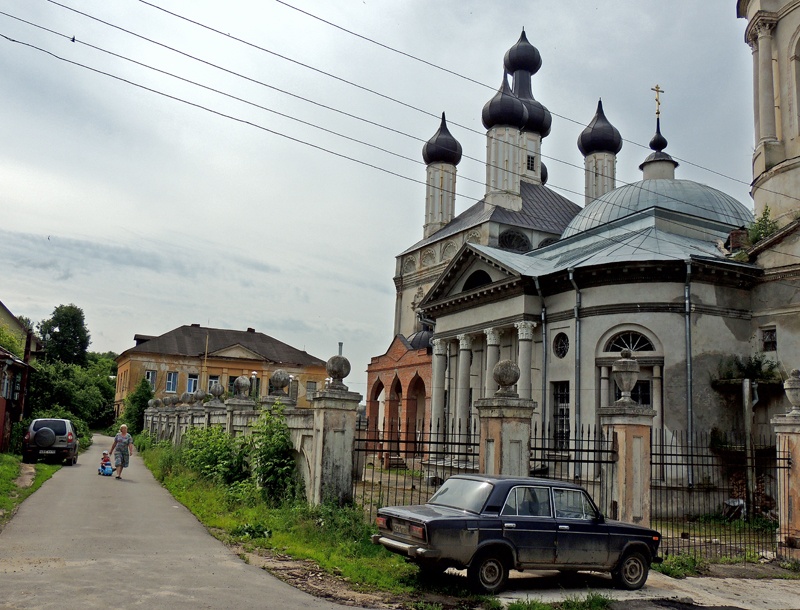 Еще в описи 1626 года храм Преображения Господня упомянут как деревянный. Каменным храм стал в 1709 году. Один из двух боковых приделов был освящен в честь Казанской иконы Божией Матери. В храме хранился чудотворный список Казанской Богоматери, и, наверное, поэтому храм, главный престол которого освящен в честь Преображения Господня, в народе стали называть Казанским.