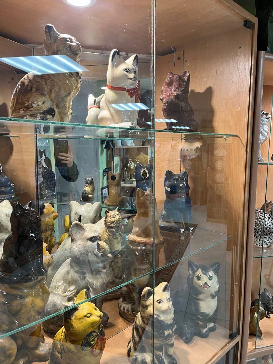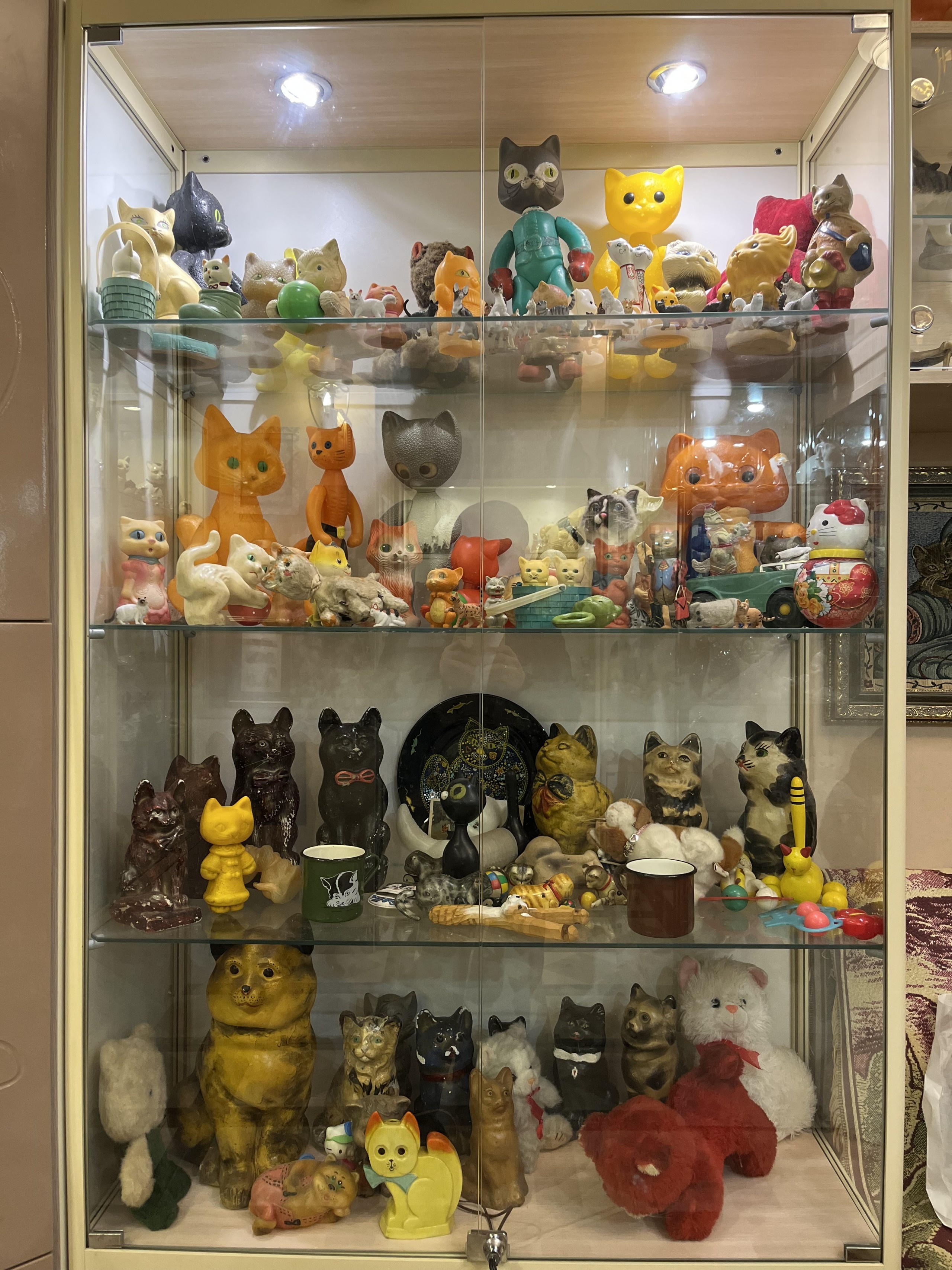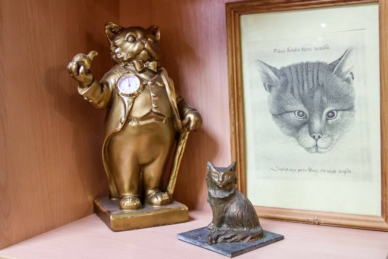Коллекция содержит фарфор, живопись, графику, гобелены, антикварные предметы быта и игрушки. Среди экспонатов есть те, что снимались в культовых советских фильмах. Владельцы экспозиции расскажут любопытные факты из области истории, жизни и традиций разных городов, стран и народов, связанных с котами.