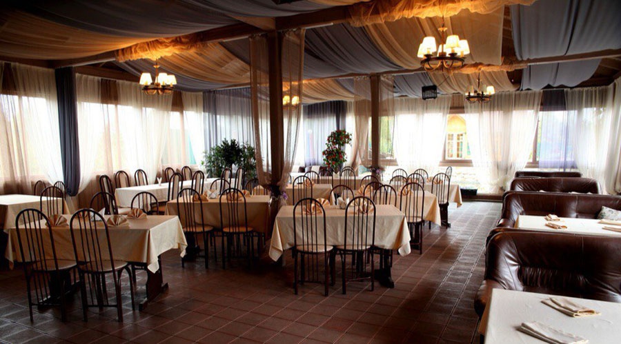 Количество залов- 2: 1 зал – на 80 человек, 2 зал (банкетный) – на 50 человек, летняя веранда – на 70 человек, 4 беседки: 1 – на 10 человек, 3 – на 6 человек.