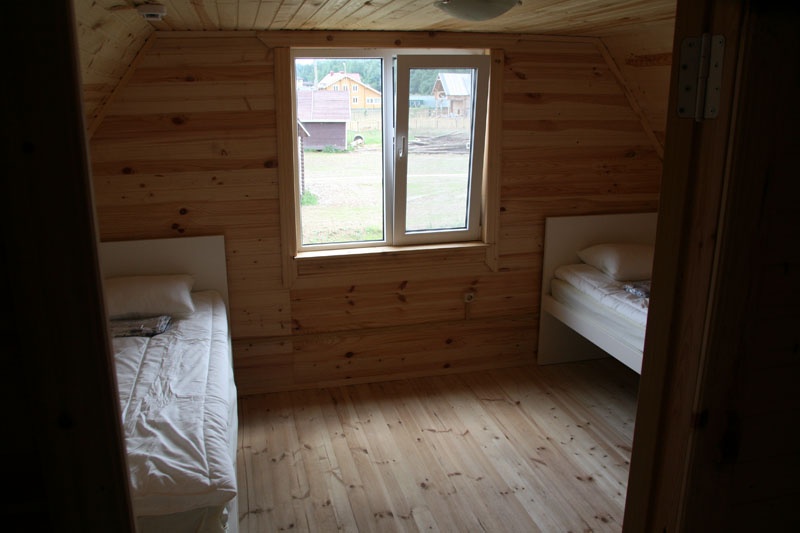 Условия размещения: Двухэтажные деревянные коттеджи со всеми удобствами. На первом этаже располагаются комната отдыха, спальня и санузел. На втором – две спальни. Дома оборудованы всеми удобствами – горячая, холодная вода, санузел с душевой кабиной. В каждом гостевом доме есть холодильник, микроволновая печь, чайник.