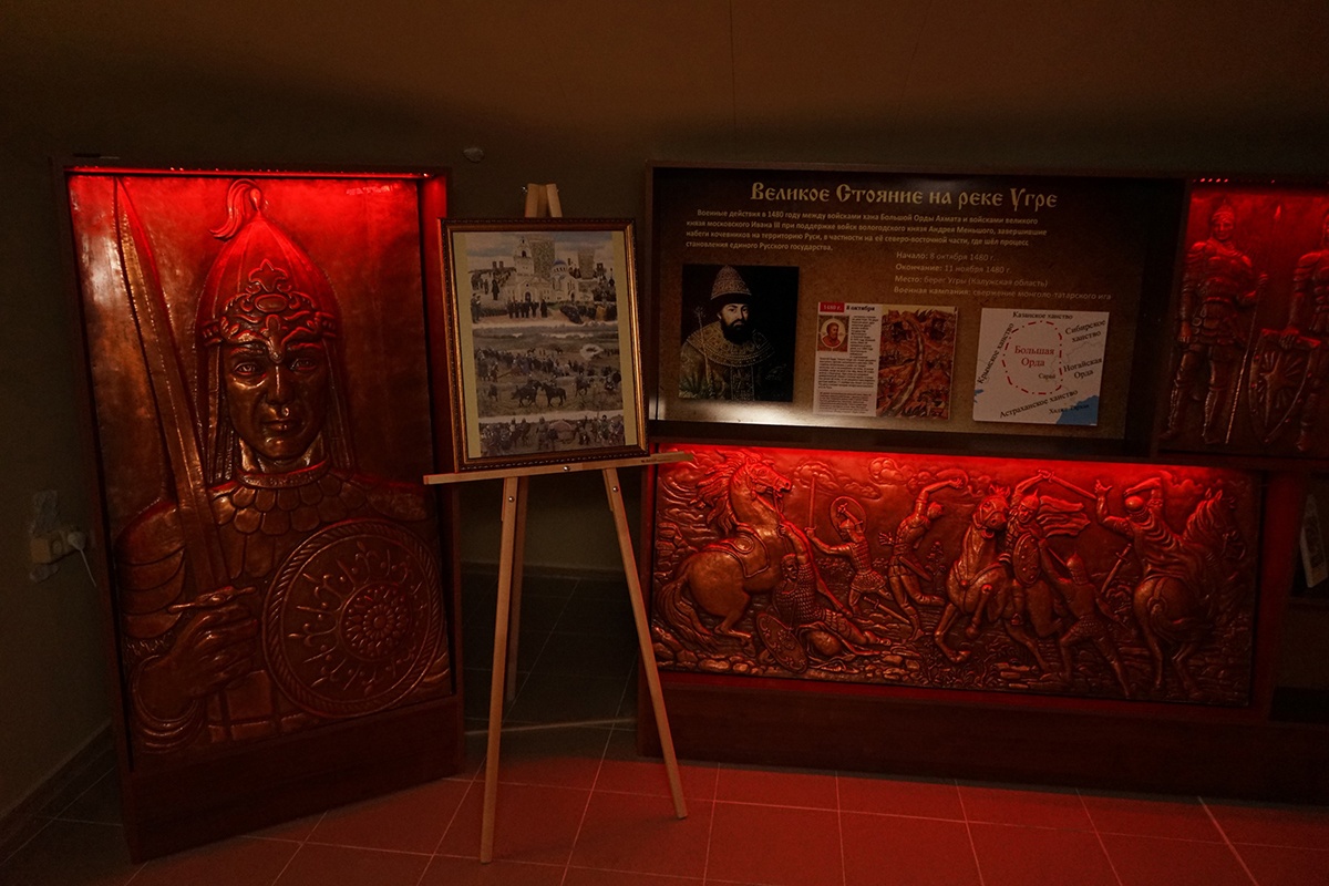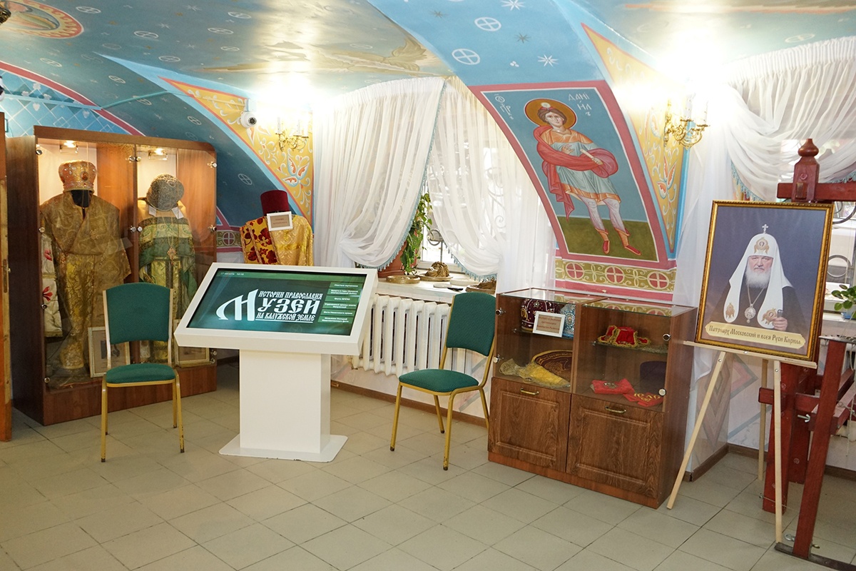 Отдельный стенд посвящен деятельности Калужского отделения Императорского православного палестинского общества. Другой стенд рассказывает об истории Калужской епархии и новомучениках церкви Русской, пострадавших в годы гонений.