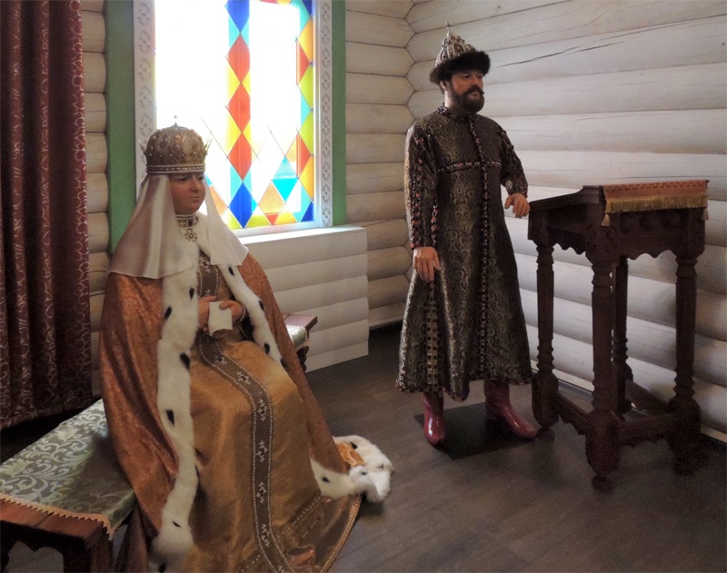 В залах второго этажа представлены экспонаты, связанные с историей династии Романовых. Восковые фигуры передают облик русских цариц.