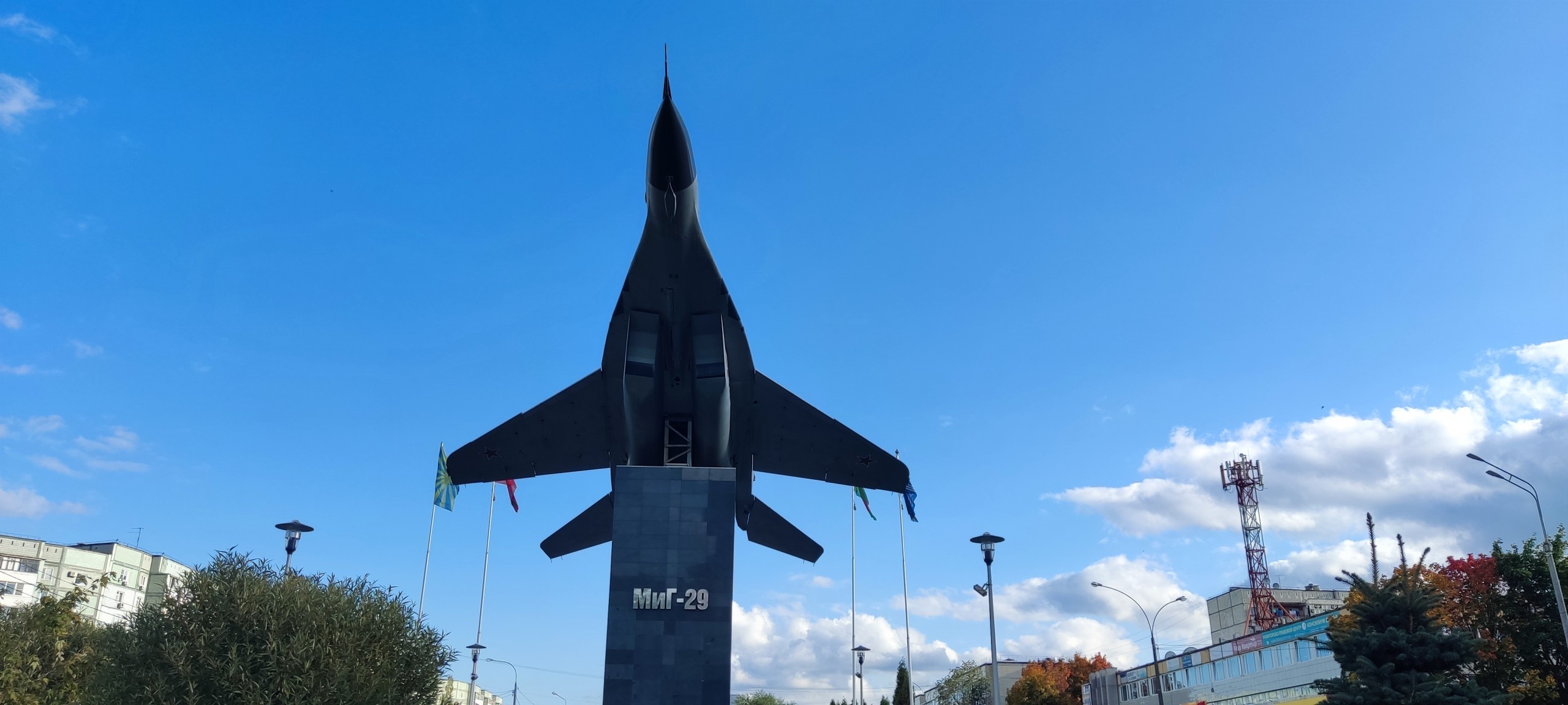 Памятный знак в виде самолета МиГ-29 был торжественно открыт в Обнинске летом 2016 года, накануне празднования 60-летия города. Инициатива установки памятника принадлежит ветеранам-авиаторам, которые предложили увековечить память авиаторов-летчиков, инженеров и техников, защищавших Родину в годы Великой Отечественной войны.