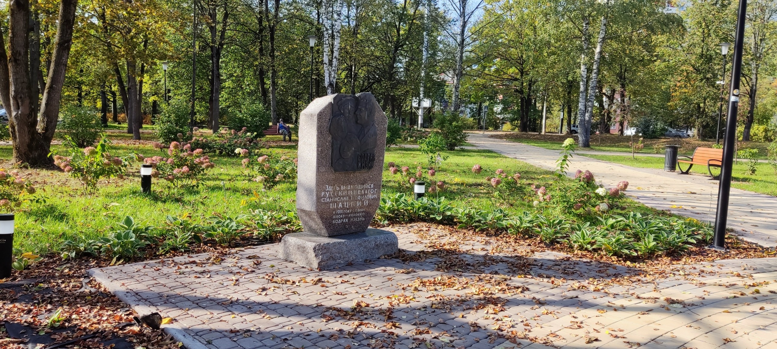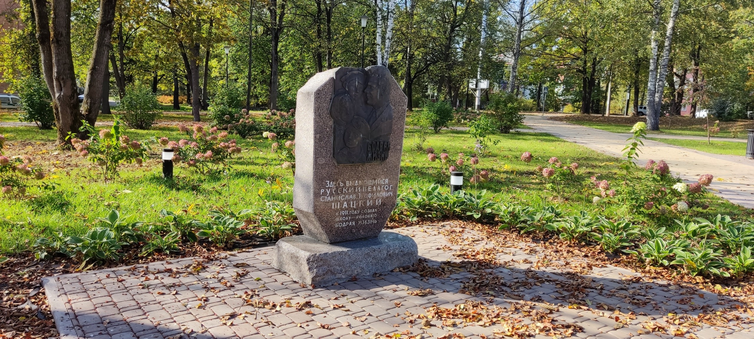 Памятный знак школе-колонии "Бодрая жизнь", которая была образована на землях будущего Обнинска в 1911 году Станиславом Теофиловичем Шацким.