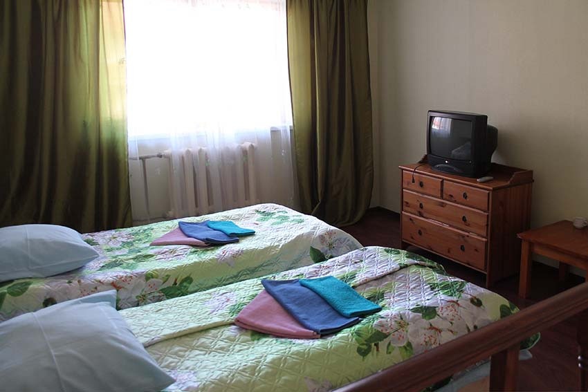 Условия размещения: Номера двух категорий – стандартные и улучшенные. В стандартных номерах есть умывальник, туалет, душ, ТВ. В улучшенных номерах: гостиная, спальня, мягкая мебель, умывальник, туалет, душ, ТВ, холодильник.