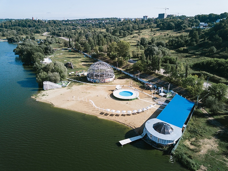 - На территории парка расположен красивый пляж с 10-метровым бассейном, присутствуют лежаки, зонтики, 4 тахты для совместного отдыха с семьей и друзьями, качели на самом берегу. Для посетителей пляжа сделаны шкафчики, уличный душ, раздевалки и уборные.