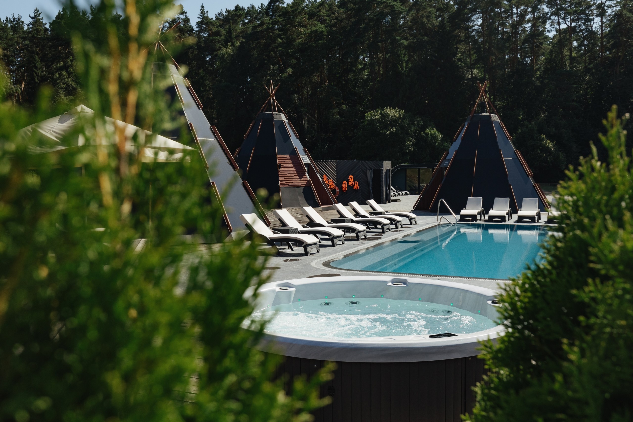 - Spa-комплекс под открытым небом. К услугам гостей джакузи, хамам, панорамная сауна, 2 комнаты отдыха с шезлонгами и чаем, массажный кабинет.