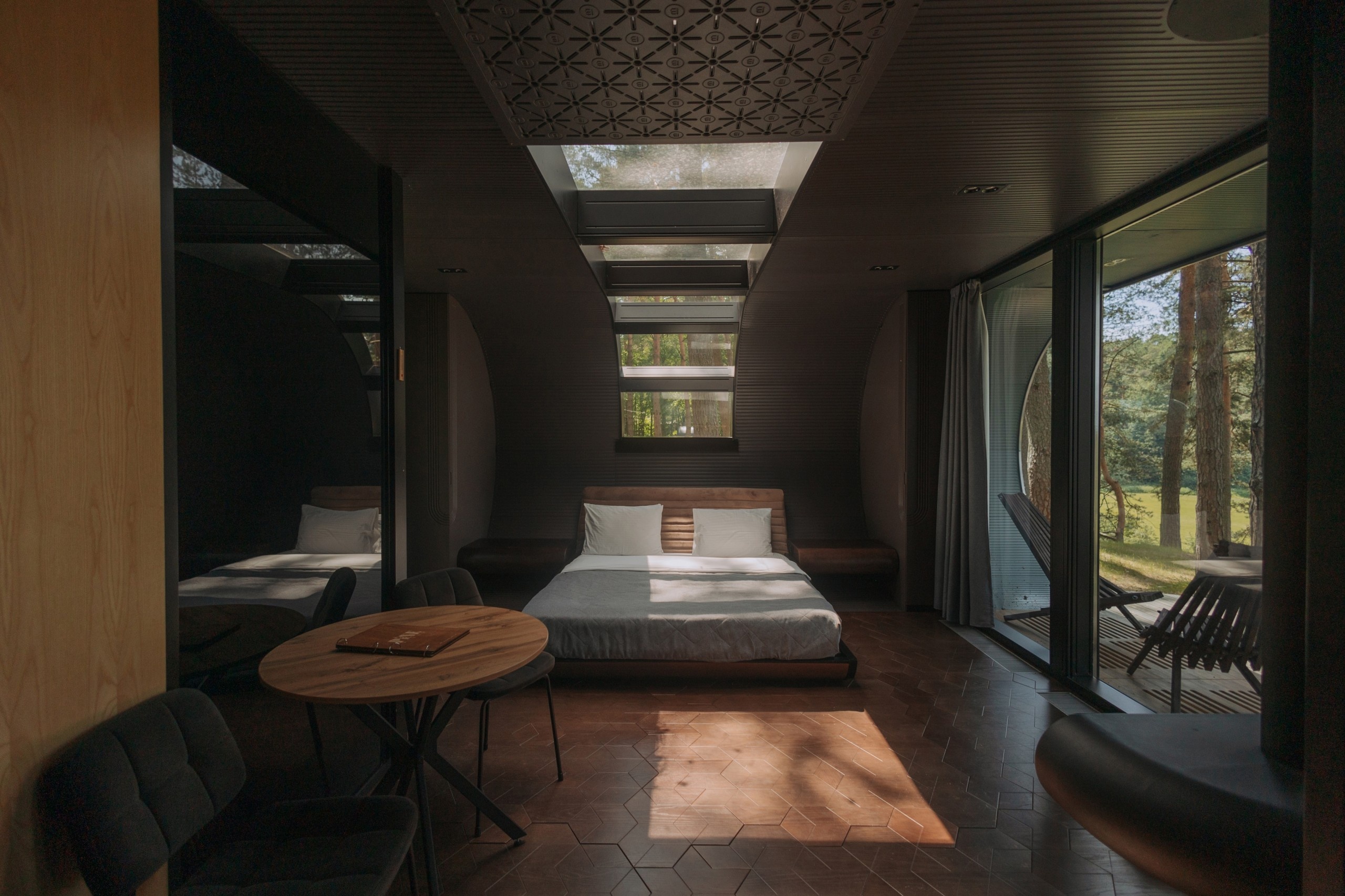 Условия размещения: Гостевые дома вместимостью от 2 до 8 человек. Разнообразие вариантов размещения: деревянные коттеджи с семейными номерами, швейцарские шале и даже уникальные номера «Нео Типи», не имеющие аналогов в мире. Отдельный вход с улицы в каждый номер. В номерах есть санузел с душевой кабиной или ванной, теплый пол, питьевая вода. Во всех номерах панорамные окна, мини-бар, камин, где-то есть терраса, а также зона барбекю.