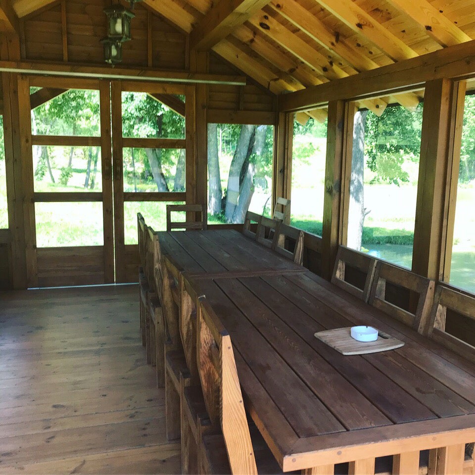 - 8 площадок для отдыха: шатры, павильоны, беседки и мангалы. Все беседки оборудованы электричеством (свет есть как внутри, так и снаружи), розетками, красивой деревянной мебелью, даже при ярком солнце внутри приятно находится из-ща легкой тонировки на окнах. В стоимость также включено использование мангала, розжиг и дрова.