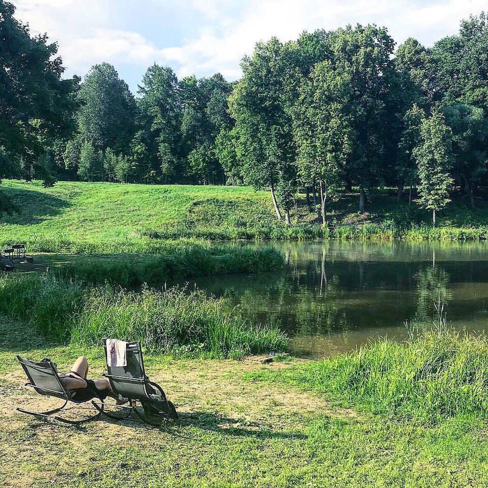 - Купание в пруду (пляж, спуск в водоём плавный и песчаный, шезлонги). Вход на пляж – 100 рублей.