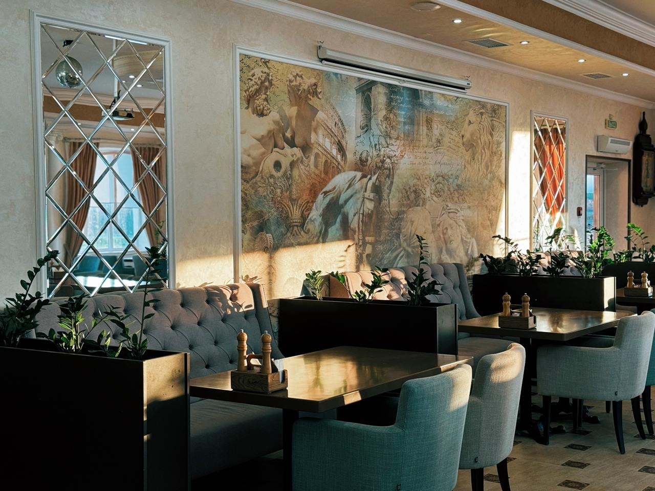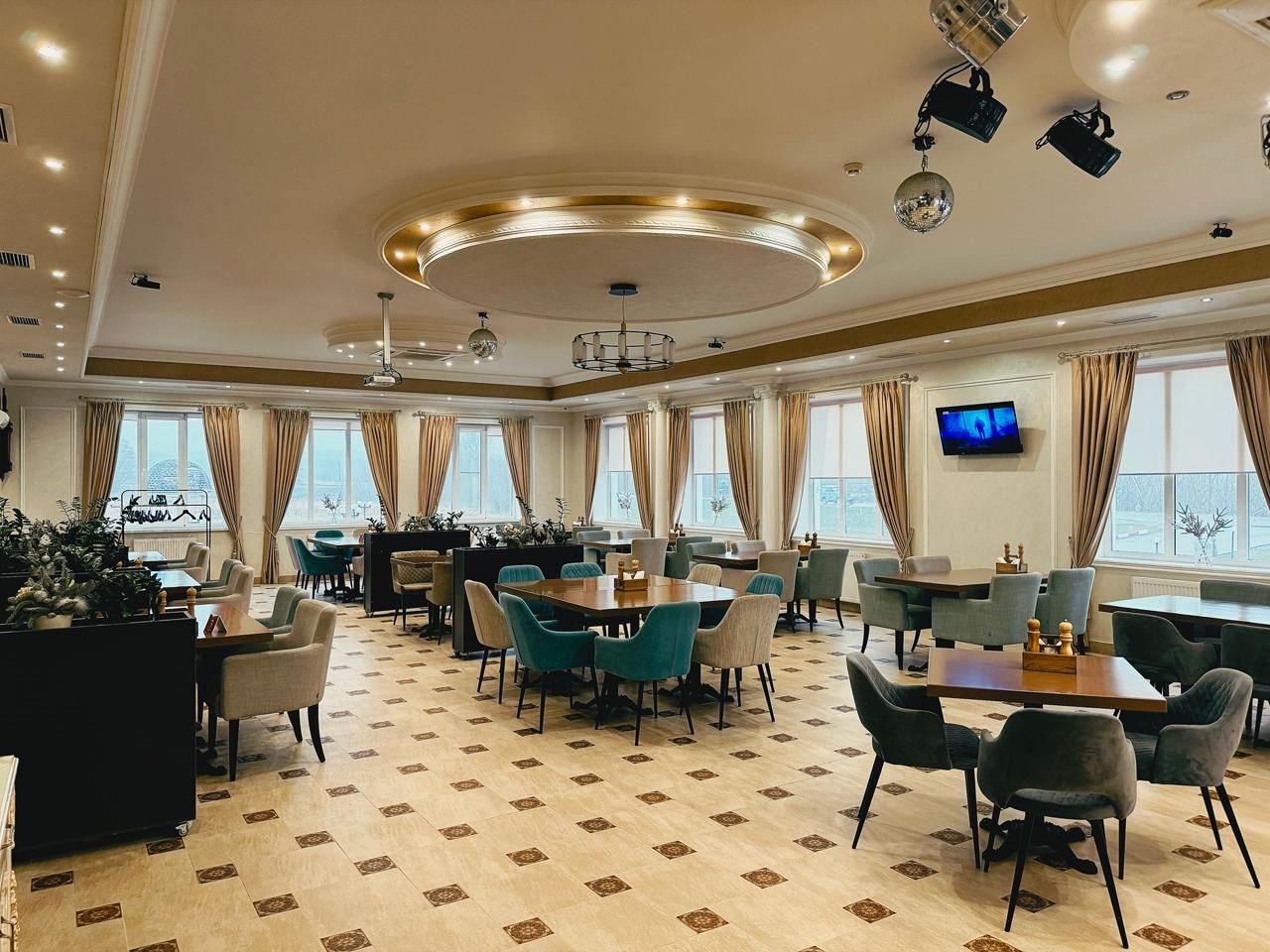 - Просторный зал ресторана отлично подходит для проведения свадеб, юбилеев и другого рода торжеств численностью до 130 человек.
