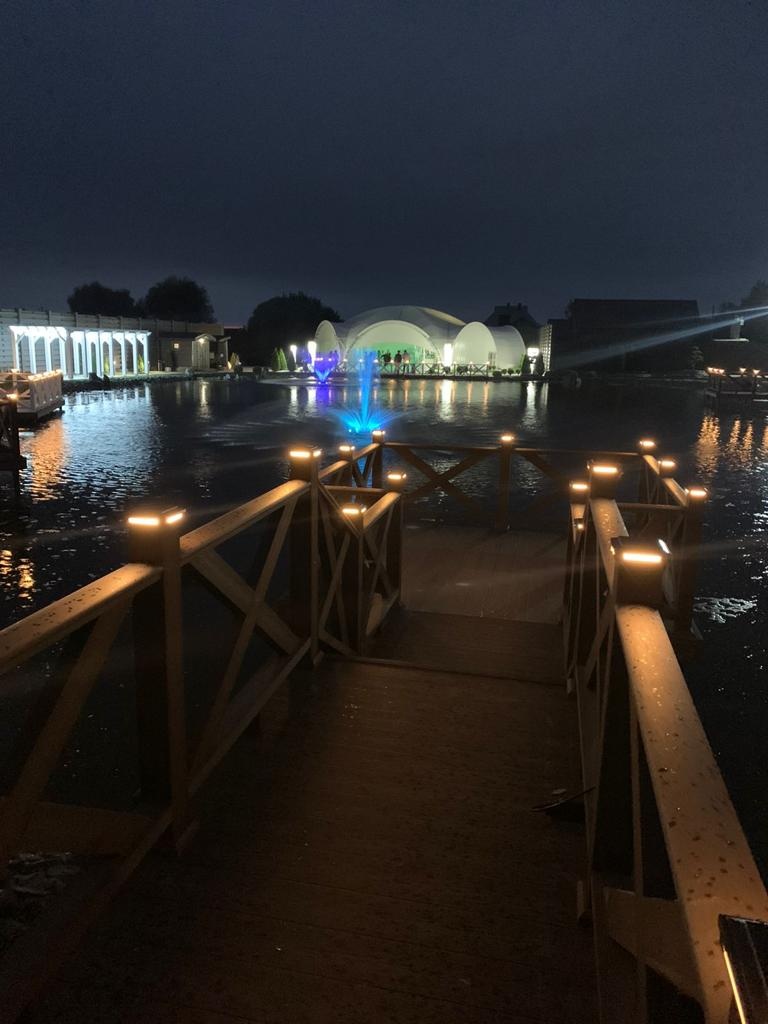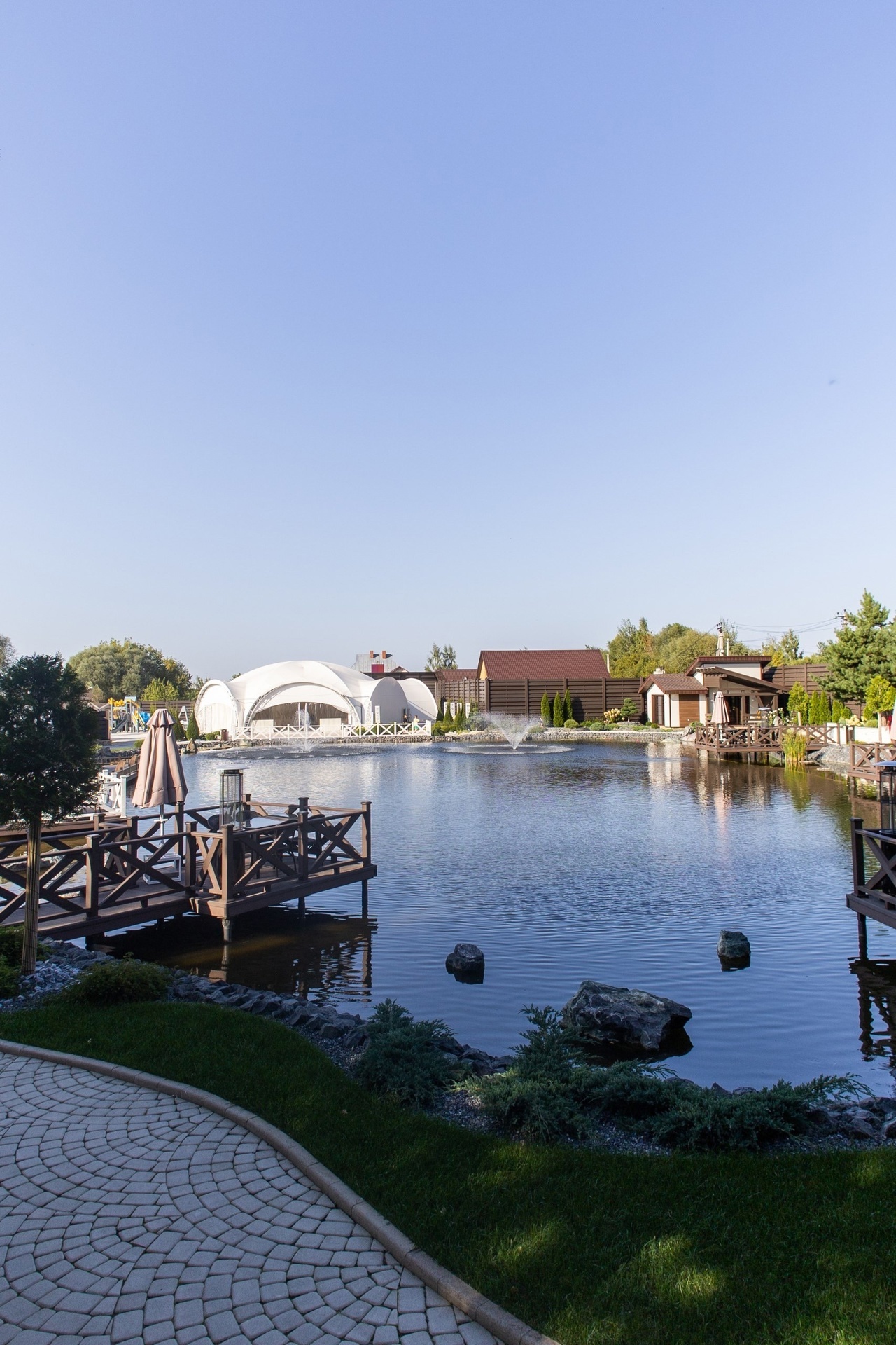 Ландшафт украшают пруд с каскадным водопадом, уникальные растения и фотозоны. Вокруг пруда расположены зимние беседки, причалы и пирсы для круглогодичной рыбалки ( осетр, стерлядь, форель, карп, карась, щука).
