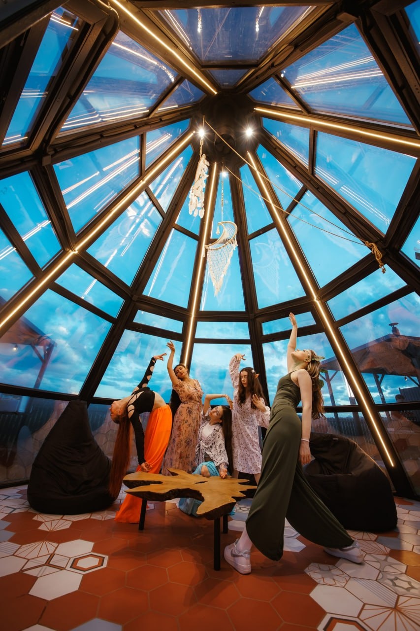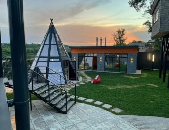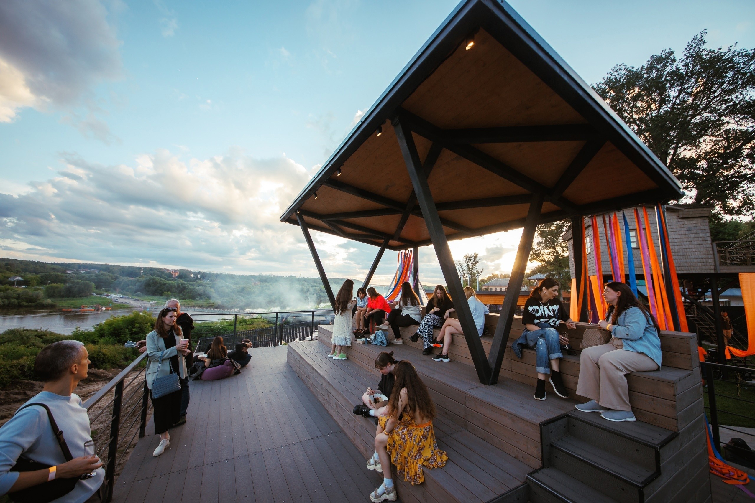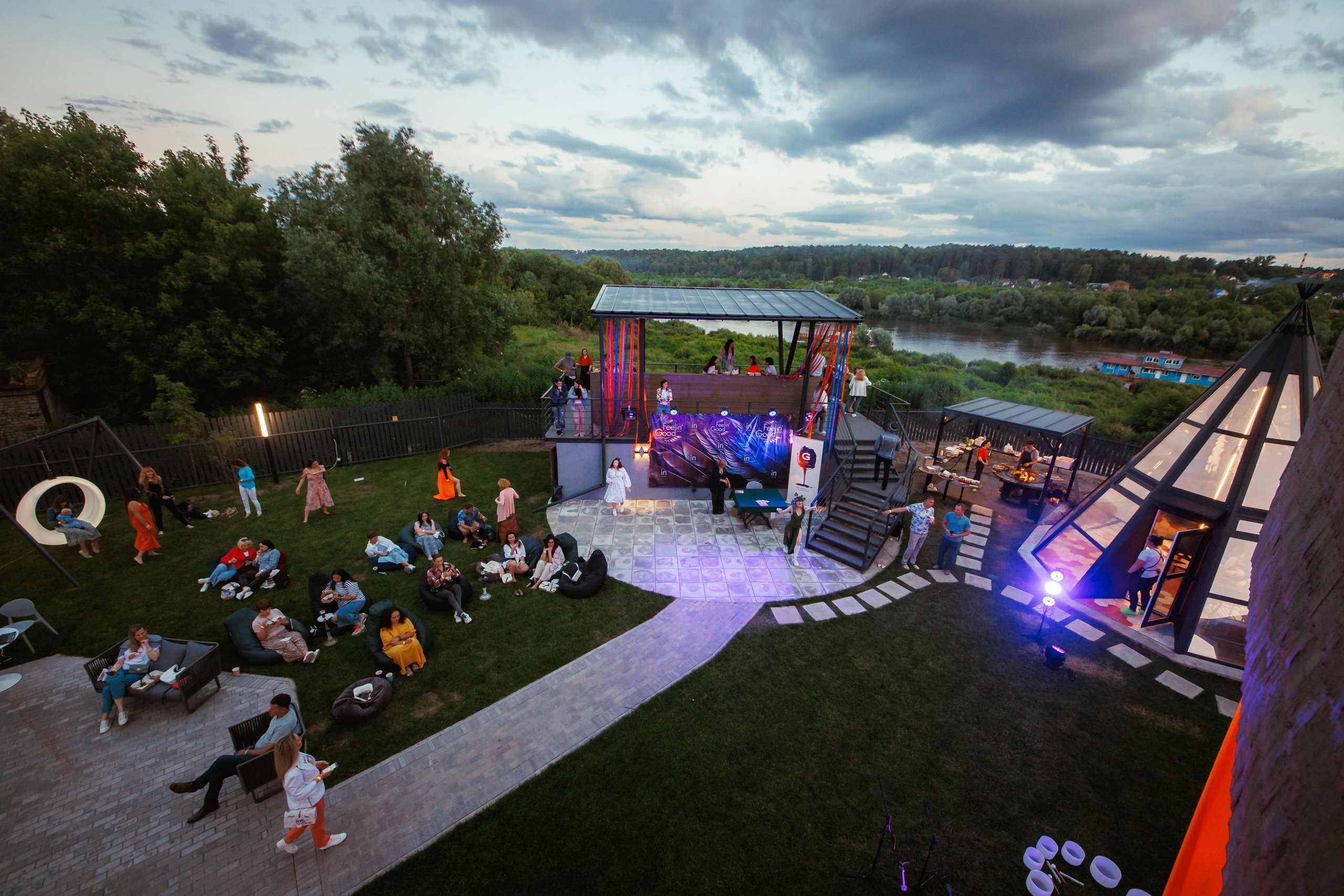 Беседки с панорамными окнами, оснащенные кондиционерами, отоплением, электричеством, вытяжками, мойками, мебелью и зонами барбекю позволяют отдыхать у нас круглый год. Для гостей, которые арендовали одну из локаций, либо всю территорию, доступны смотровая площадка с прекрасным видом на Оку и костровая зона. Кстати, для нее мы бесплатно предоставляем пледы и дрова. Для романтических свиданий или для проживания с ребёнком на нашей территории есть домик на дереве. Он также обустроен для комфортабельного времяпрепровождения: кровать для двух взрослых со вторым ярусом для ребенка, душ, туалет, мебель.