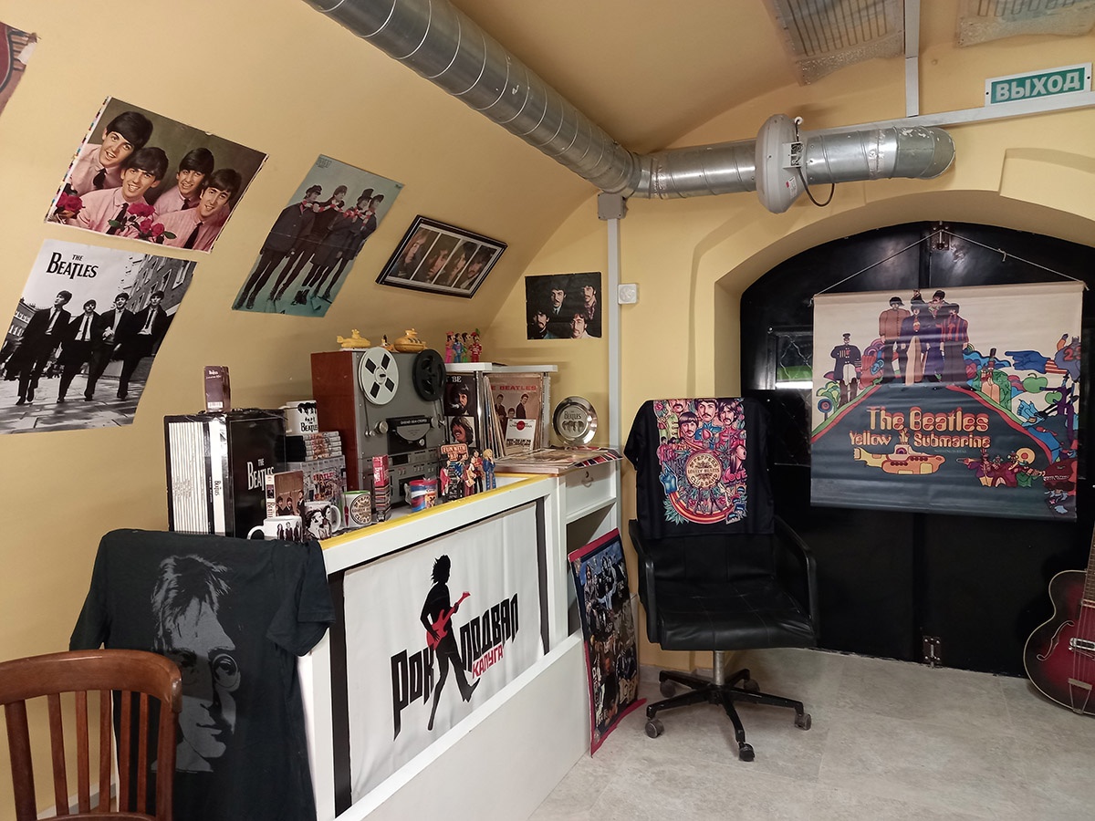 Рок-подвал занимает несколько залов: экспозиционный с винтажной техникой и ретроэкспонатами, концертный — со сценой и небольшим зрительным залом, есть комната под названием "музыкальная шкатулка" — там можно послушать оригинальный винил. Есть и вестибюль с барной стойкой, и гримерка для артистов, выступающих на "подвальниках". Отдельная экспозиция посвящена группе «The Beatles» — это личная фан-зона хозяина рок-подвала. Все экспонаты можно трогать, не забывая при этом, что музей создан на основе частной коллекции.