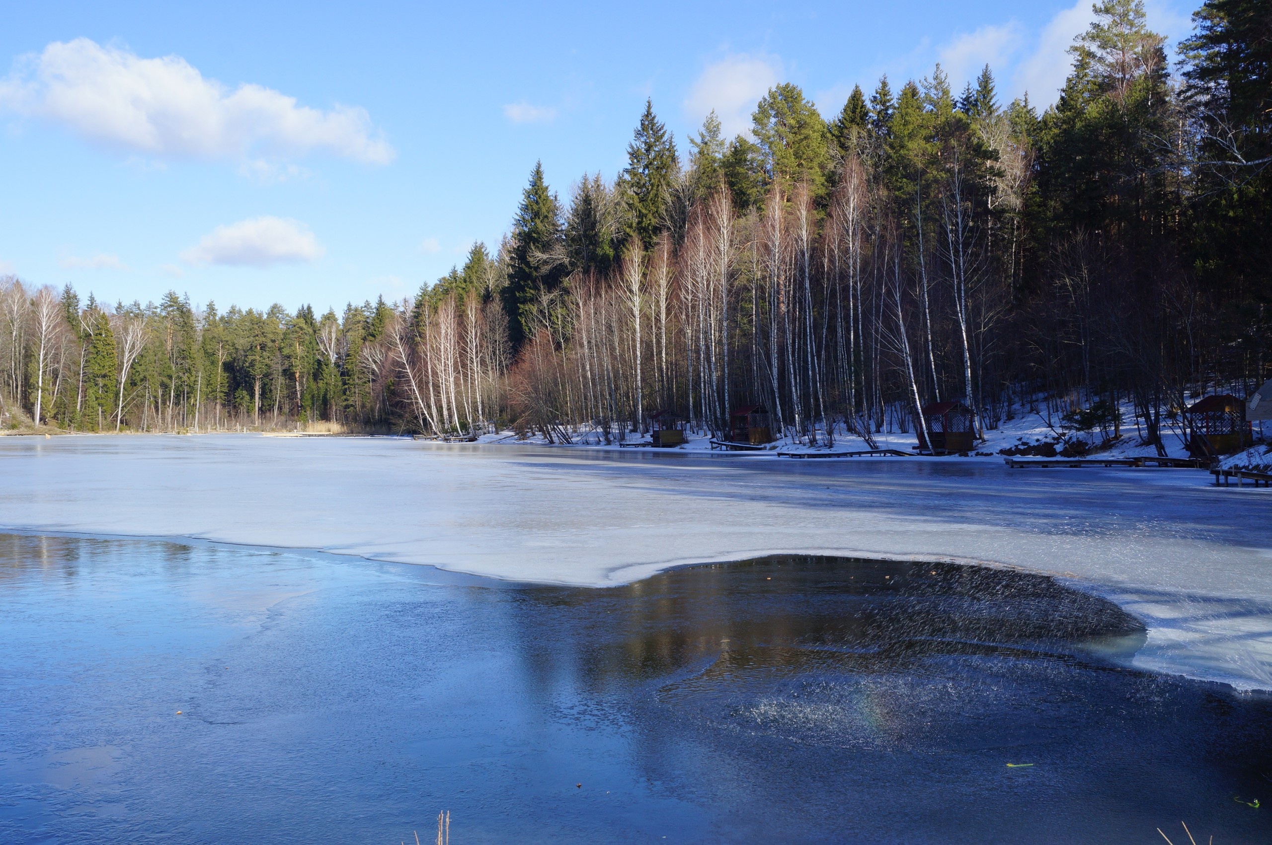 Берег озера обустроен мостками и беседками для удобства рыболовов. Желающие остаться на несколько дней могут установить палатки или снять номер в одном из бревенчатых домиков с двухместными номерами с отоплением, расположенных тут же на берегу. Это позволяет гостям базы отдыхать на ней и летом, и зимой. Все дома имеют просторные, освещаемые веранды с видом на водоем.