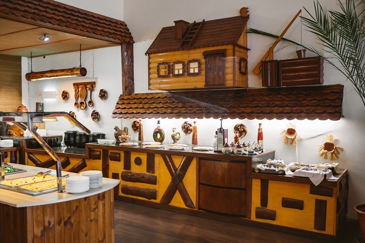 Питание: на территории комплекса есть ресторан «Славянский» (шведский стол), шашлычное кафе, кулинариум-кафе, кафе с баром.