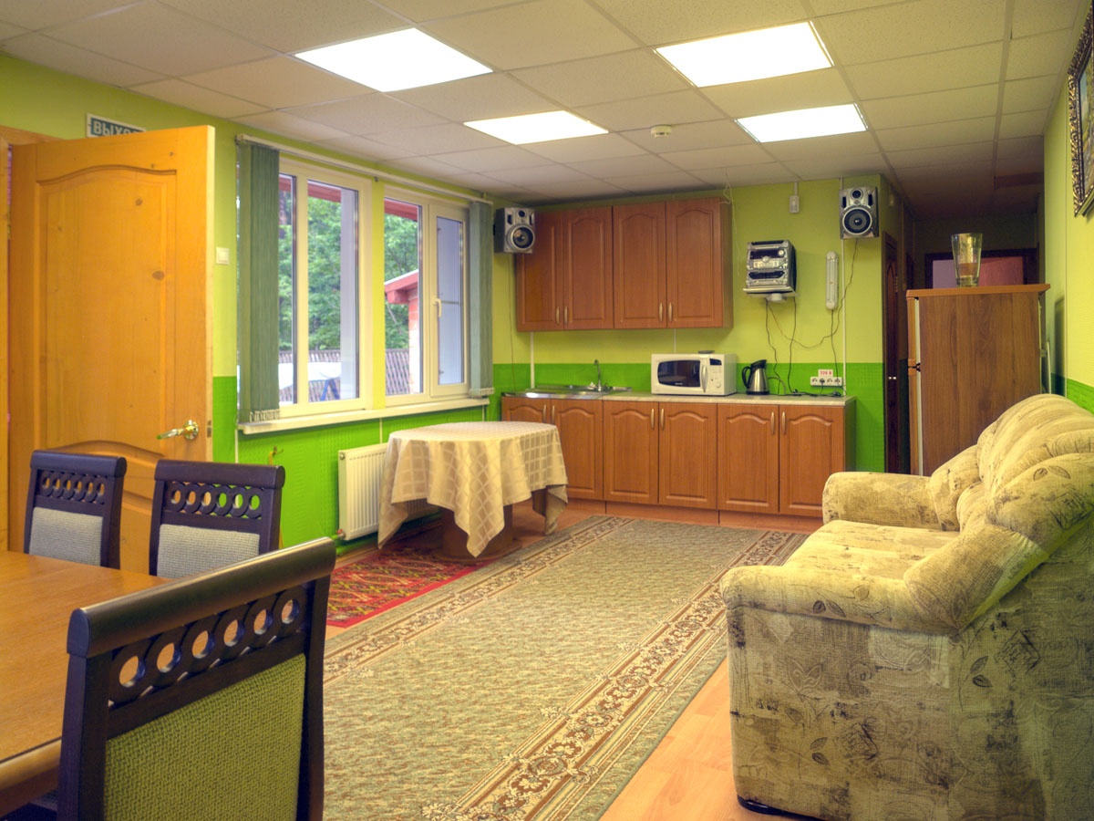 - Для размещения построены два трехэтажных корпуса на 120 человек, корпуса соединены переходами. Номера двухместные, с отдельными удобствами. В люксах есть холодильник и телевизор.