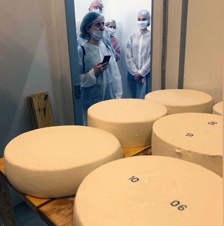 - Знакомство с производством: от приемки молока до упаковки сыра, с обязательным визитом в сырохранилище.