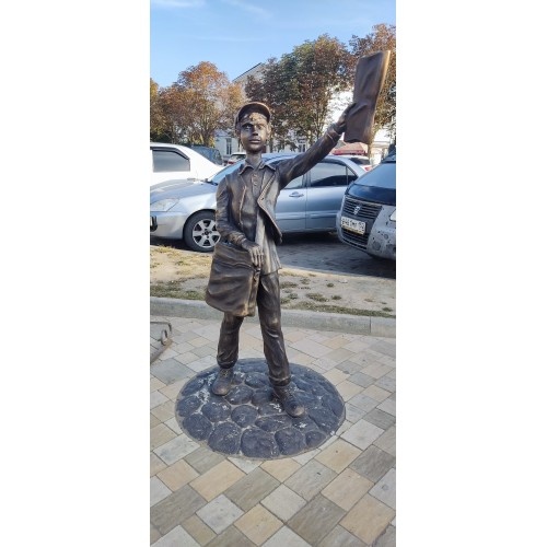 Тематическая скульптура "Мальчик-почтальон со свежей прессой в руках" – это своеобразный подарок Районного информационного центра городу, а так же символ оперативных новостей и интересных статей, которые «добывают» и пишут сотрудники РИЦ для своих читателей.