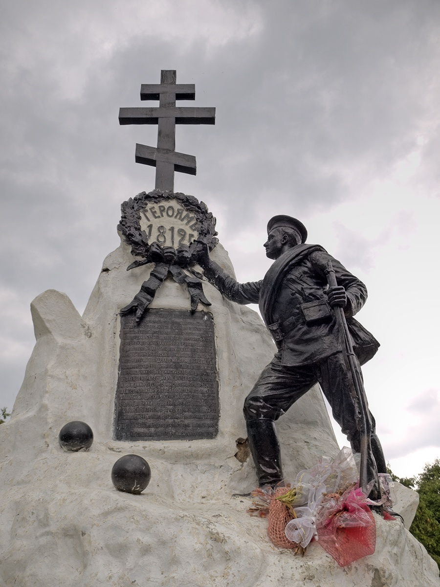 Братская могила, находящаяся в сквере 1812 года, ознаменована памятником. На бетонном постаменте - три полевых орудия второй половины XIX в. и пирамида ядер. Фигура солдата в форме Полоцкого пехотного полка, возлагающего бронзовый венок с надписью "Героям 1812 г." к подножию бронзового креста - выполнена художником и скульптором Императорской Академии художеств В. Н. Руссо.
